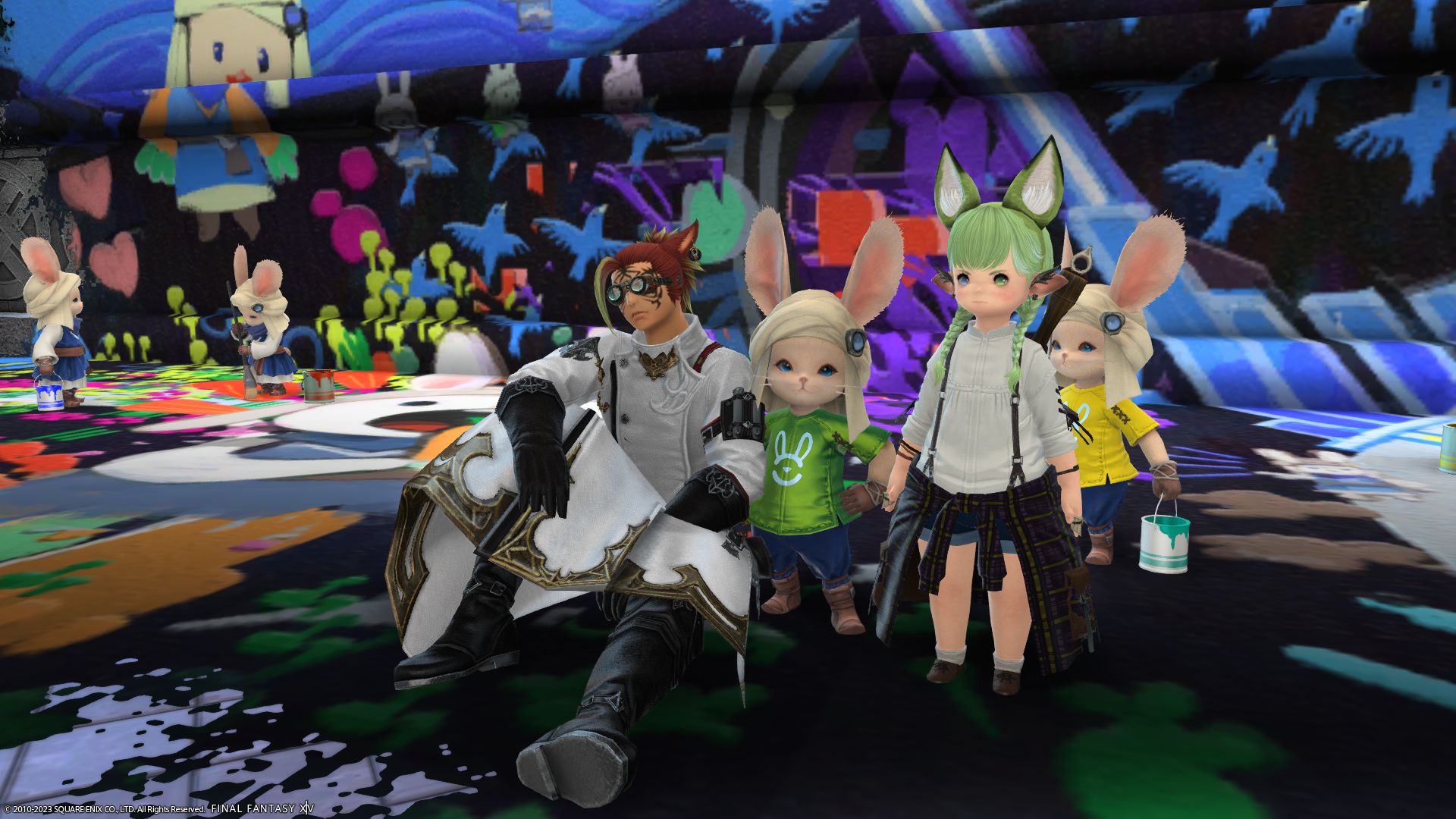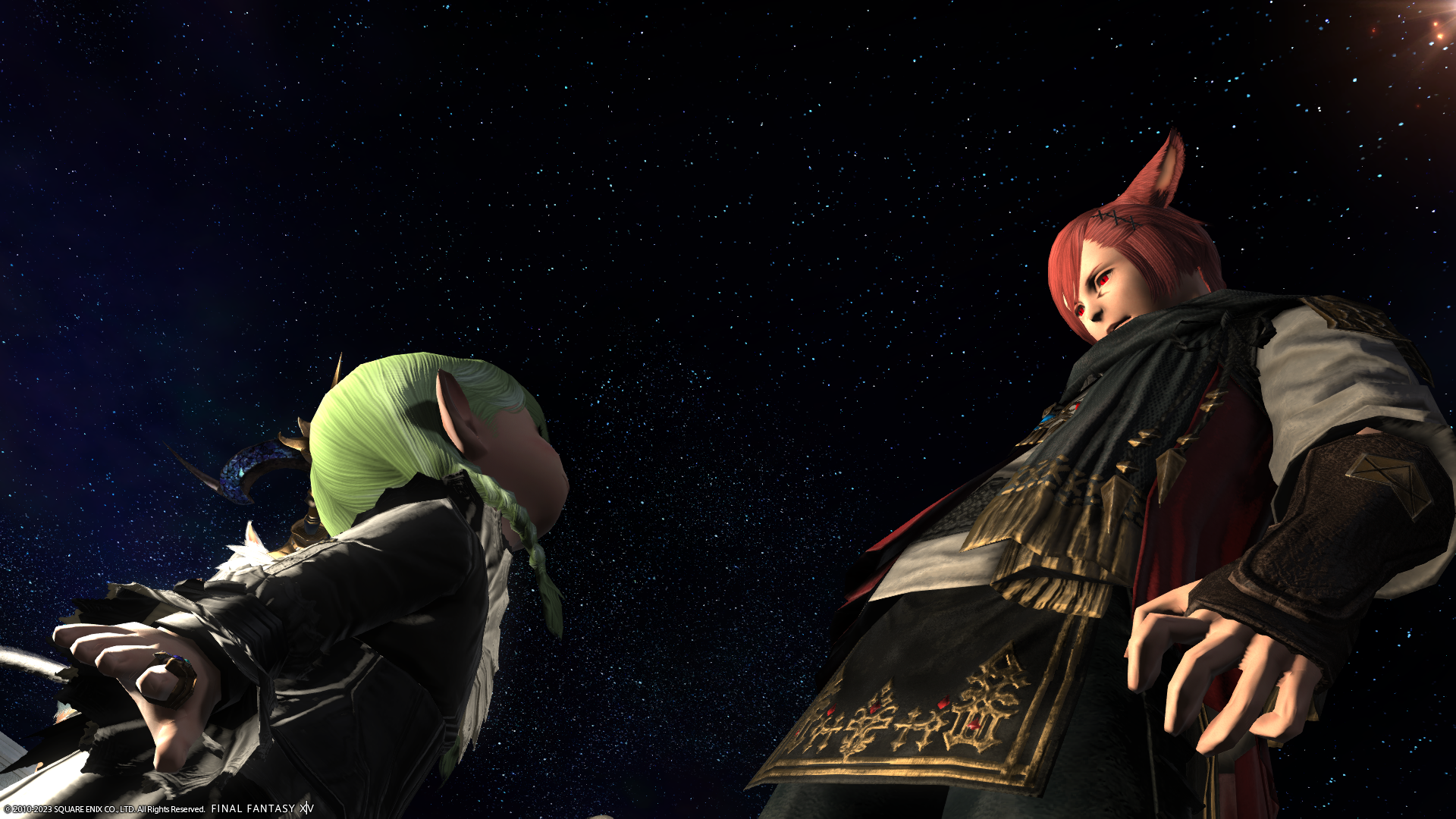 ミコッテさん(左)、ジョブチェンジとともに髪型も変わってる~(前の写真で斧持ってたミコッテさんです)。