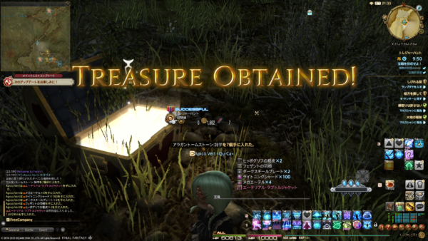 結構、サブマリンボイジャーが調度品やミニオンの素材拾ってくるのですよね。フリーカンパニーハウスを建ててからしばらくは、わたくしちまちまボイジャー派遣しておりましたが、昨年末くらいからボイジャーに目覚めたフリーカンパニーメンバーさんが、ごりごりパーツを強化してめっちゃパワーアップしてくださいました。