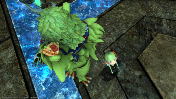 サボテンダーのダンス?のエモートを披露するフリーカンパニーメンバーさん。