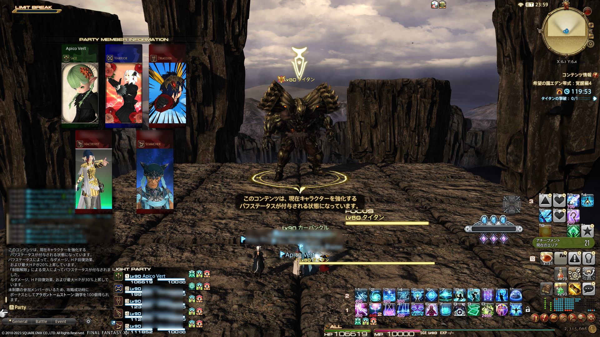 前にも挑戦はしていたのですが、全然勝てる気がしなくって…。でも、装備のILvも上がっているしどうかなーと。以前挑戦したときと間が空いたので、割と忘れちゃってたところも多いけど、徐々に思い出し…。