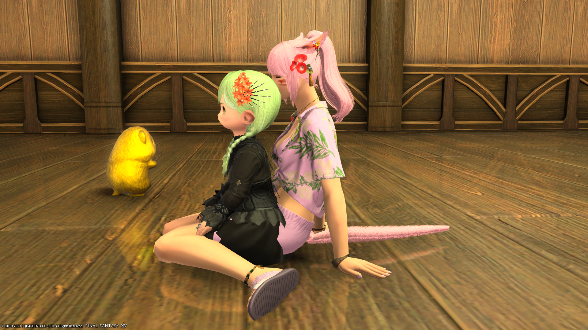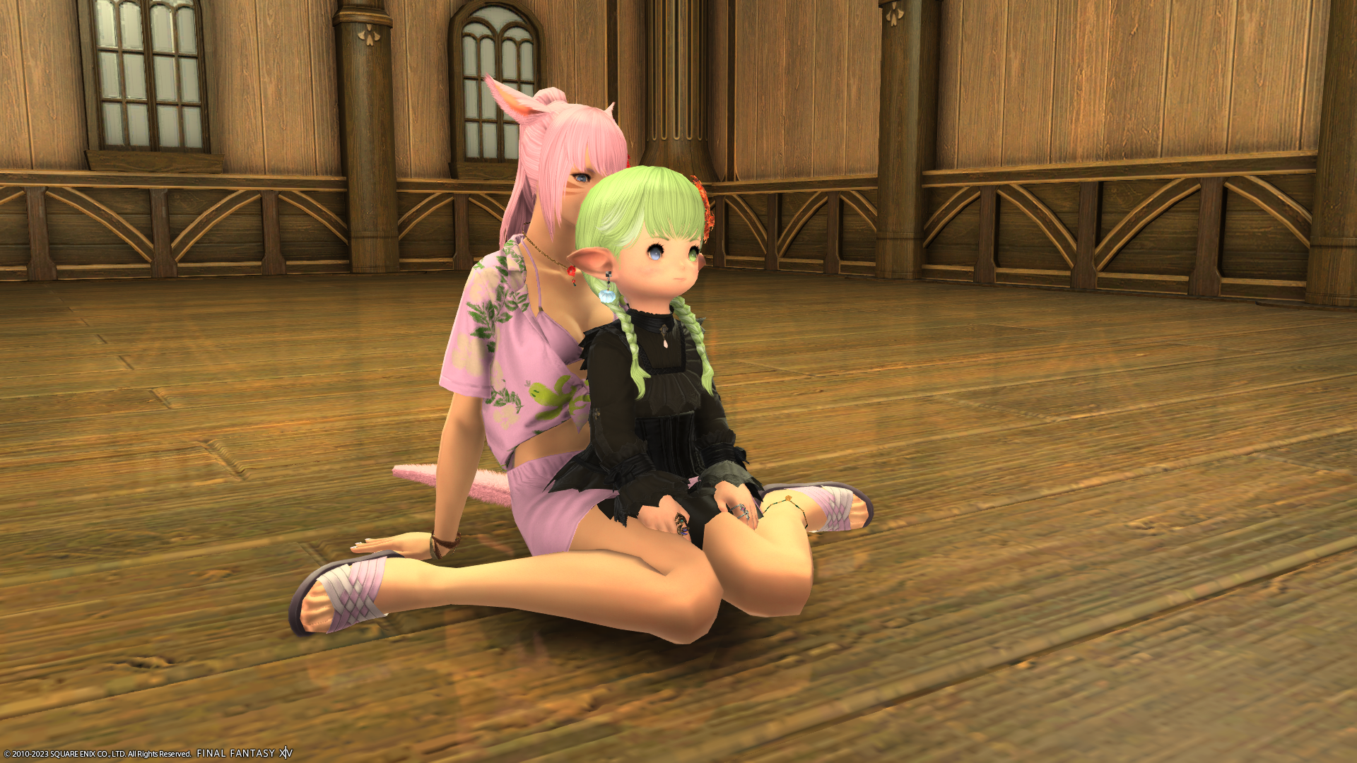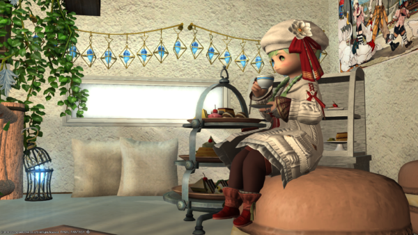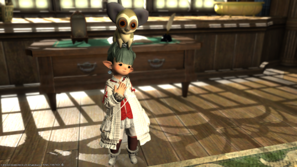 まだお部屋にはなにもありませんが…フリーカンパニーメンバーのあざといミコッテさんが遊びに来てくれました。