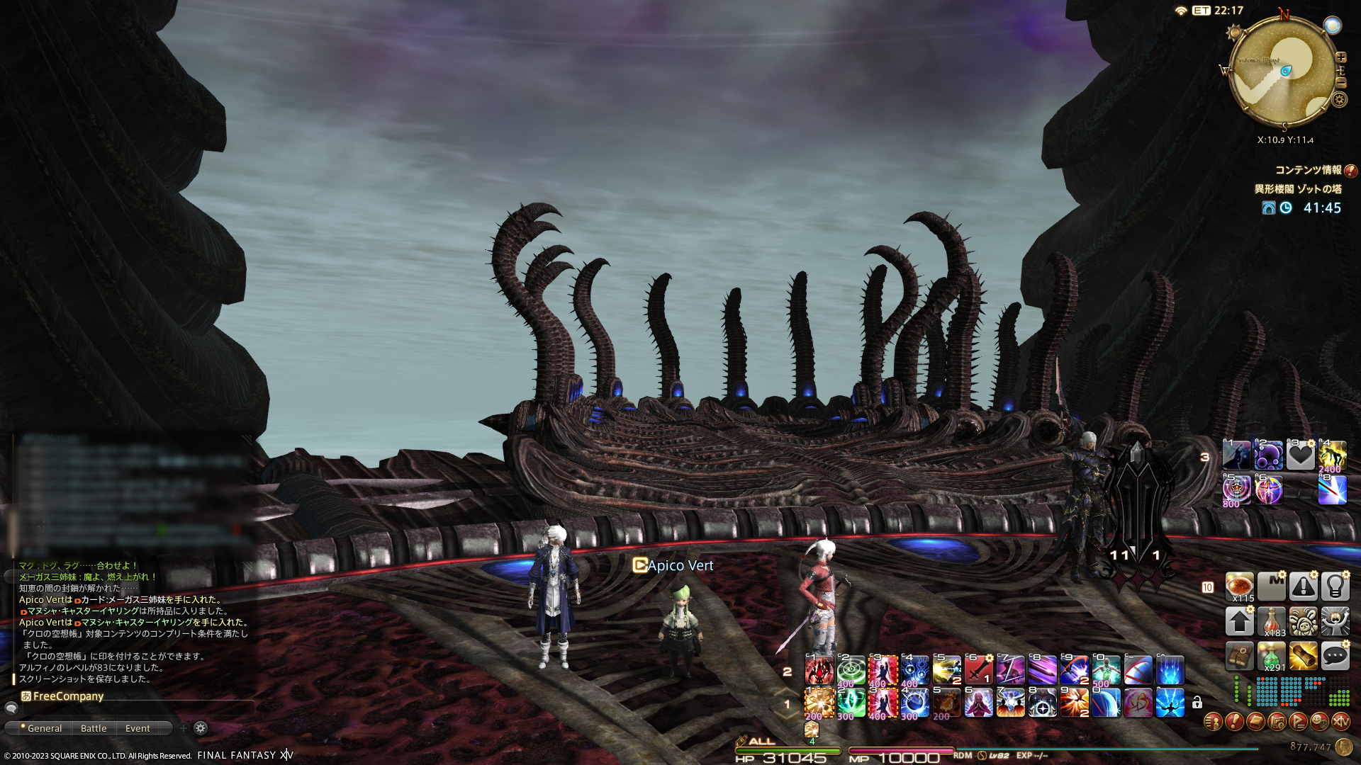 空想帳のLv81~Lv89ダンジョンは、フェイスのアルフィノさんのレベル上げを兼ねてゾットの塔へ。