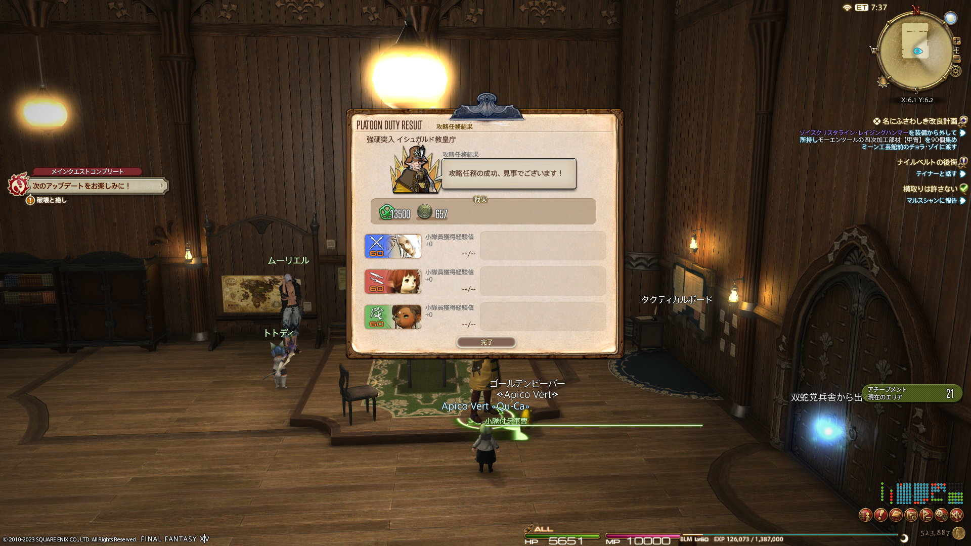 みなさま慣れてきているし装備品のレベルも上がっているので、討伐も早くなってて楽になりました。