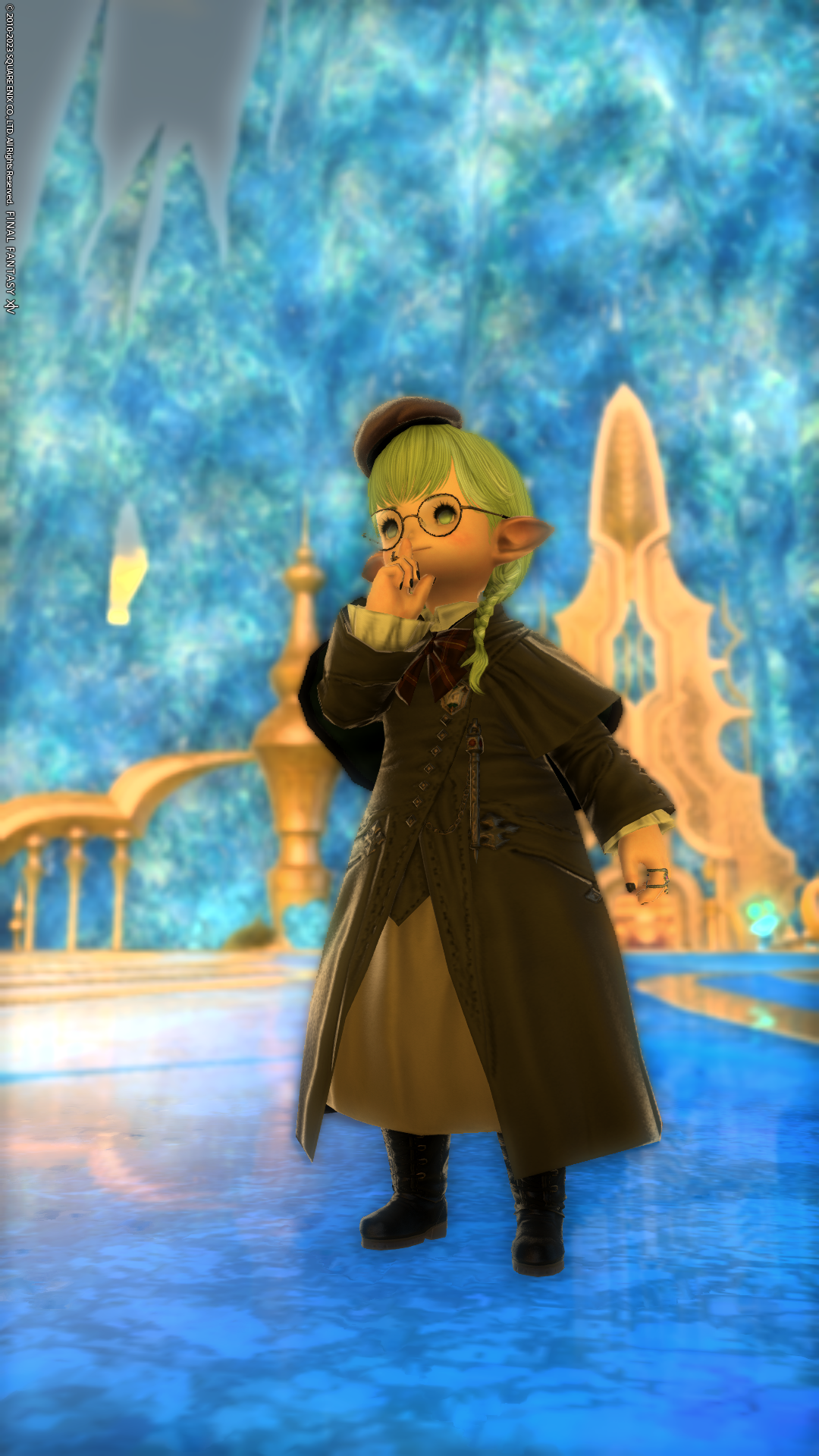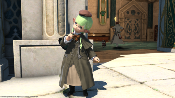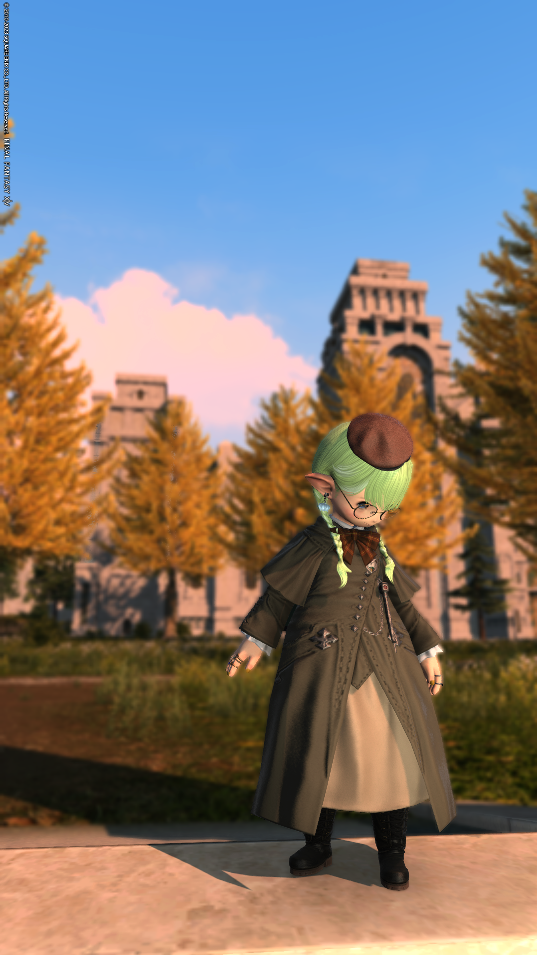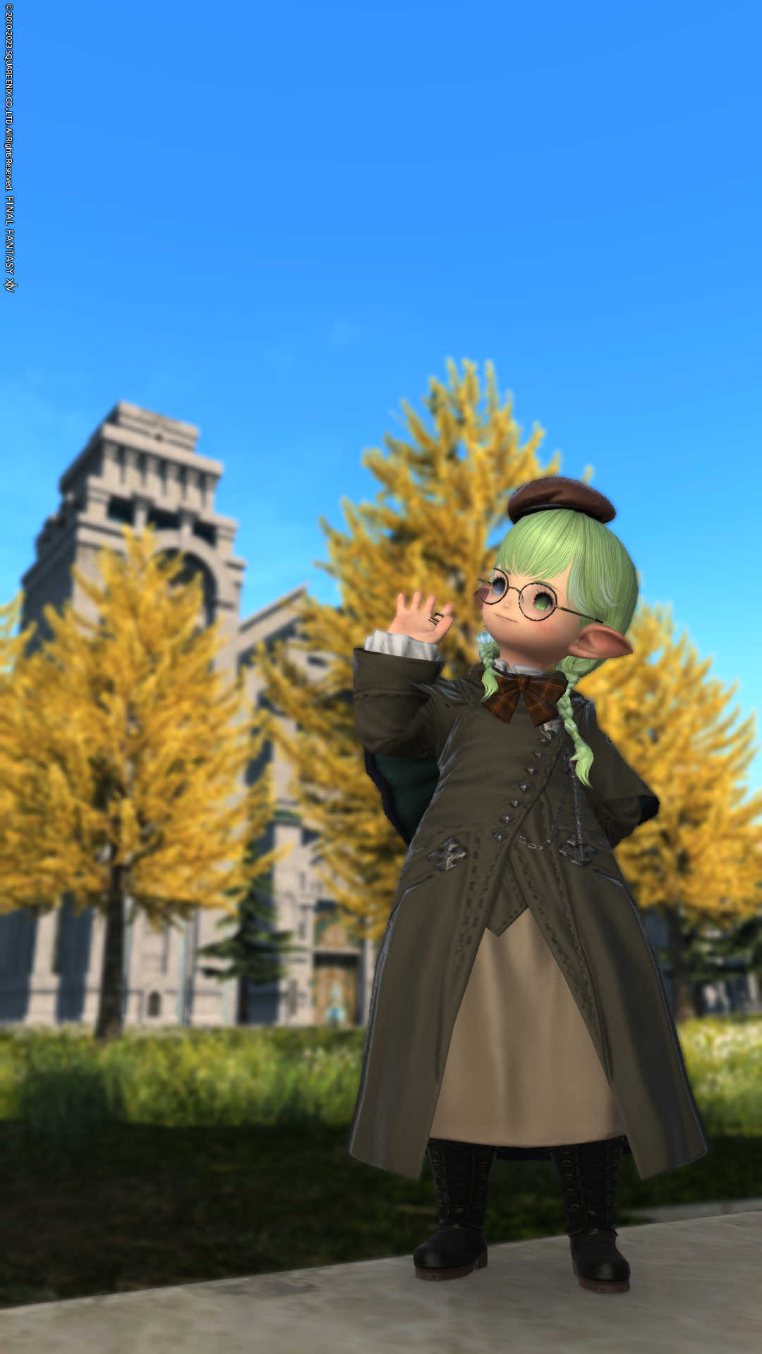 未来の服装ミラプリを考えようと、ナップルームに行こうとしたら、前でへんなミコッテさん(フリーカンパニーメンバーさん)が踊っていて怖くて入れませんでした。