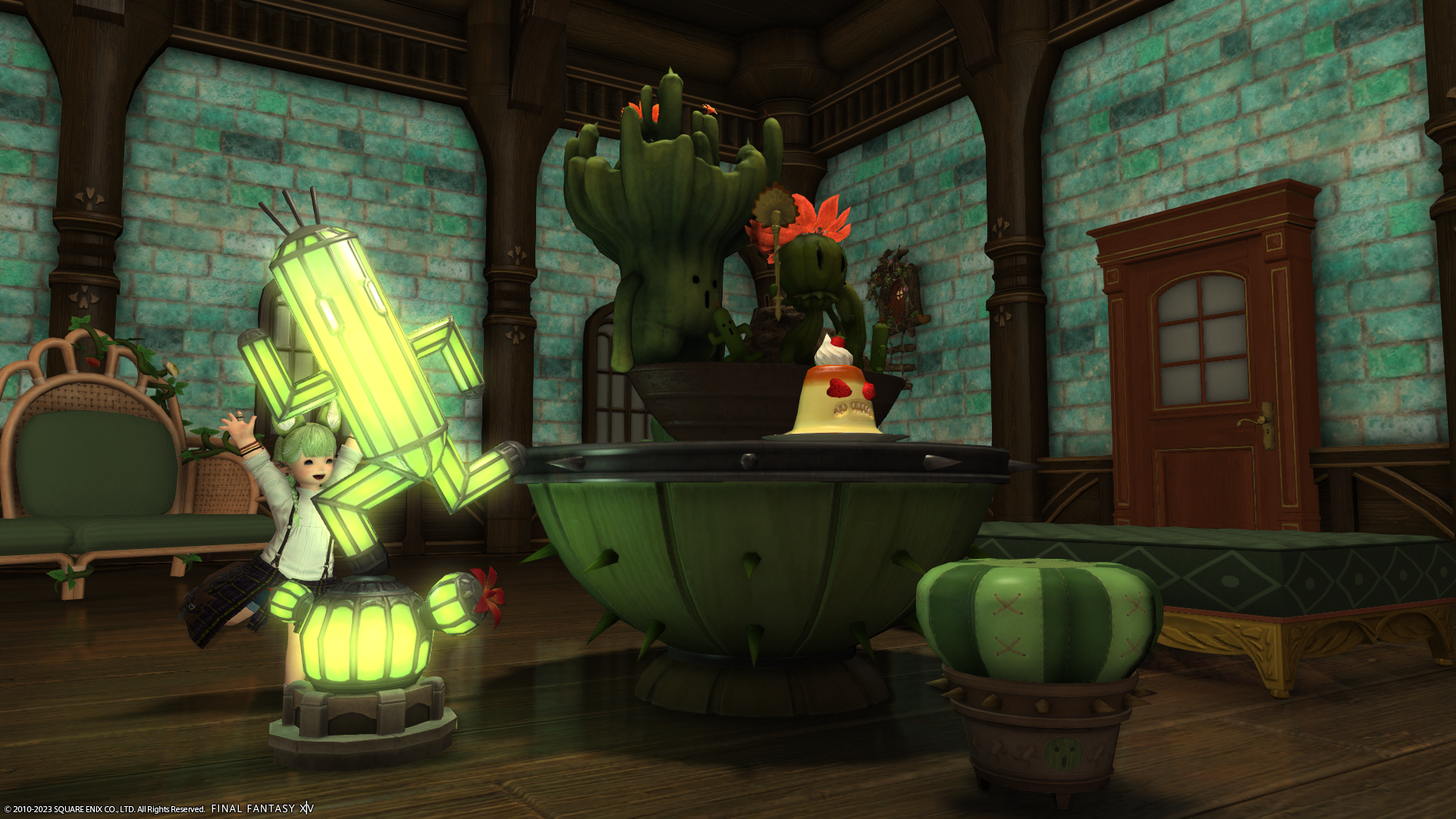 アパルとメントの内装は「緑」をテーマにしようと思っております。なんかサボテンの家具置いちゃったながれでそんな感じになりました。
