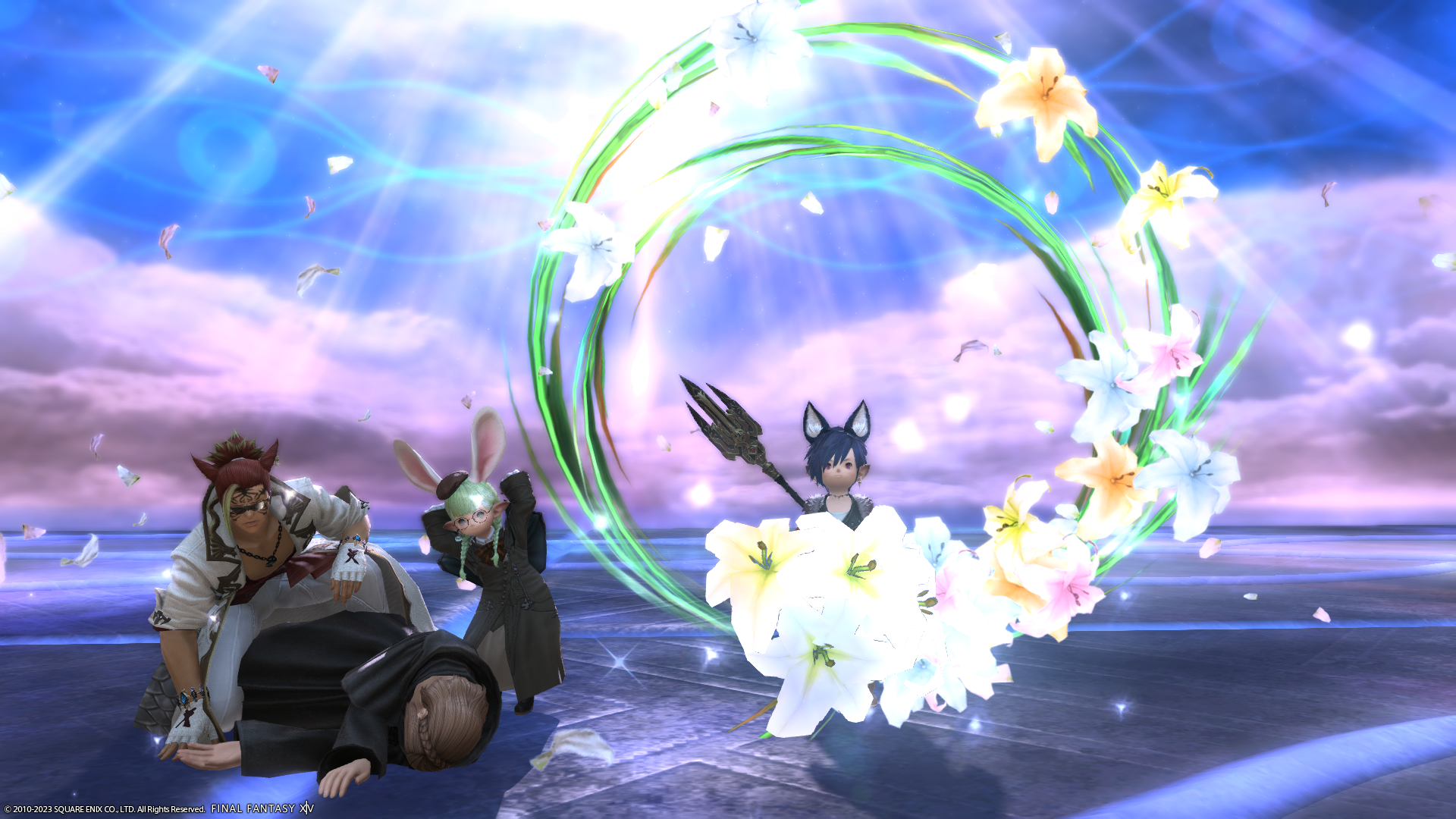でも、ほぼ毎日アライアンスレイドルーレットに行っているので、だいぶ鍛えられたはずだったのですが……。ララフェル2名は転がったので残りのお2人でたおしてくださいました。毎度お世話になります。