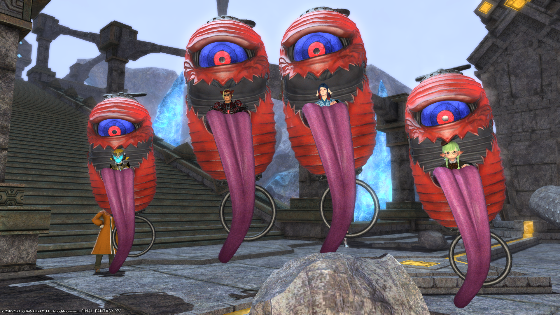 めずらしくマウントの大きさ一緒!!ララフェルが乗るとめっちゃ小さいこと多いよね…。