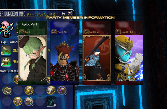 この後、フリーカンパニーメンバーさんがもう1方ログインなさってきたので、その方がINして4人揃ったら行きたいねーと言っていた、六根仙の未開放ルートを開けにゆきました。