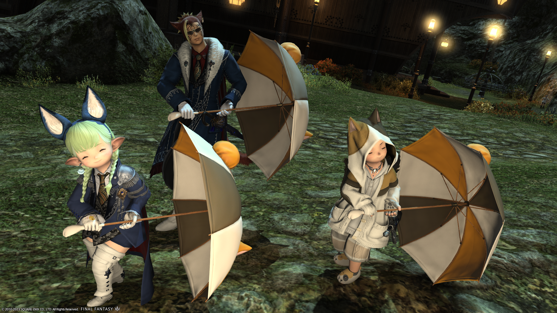 傘でミコッテさんの顔を隠すというナイスプレイ。