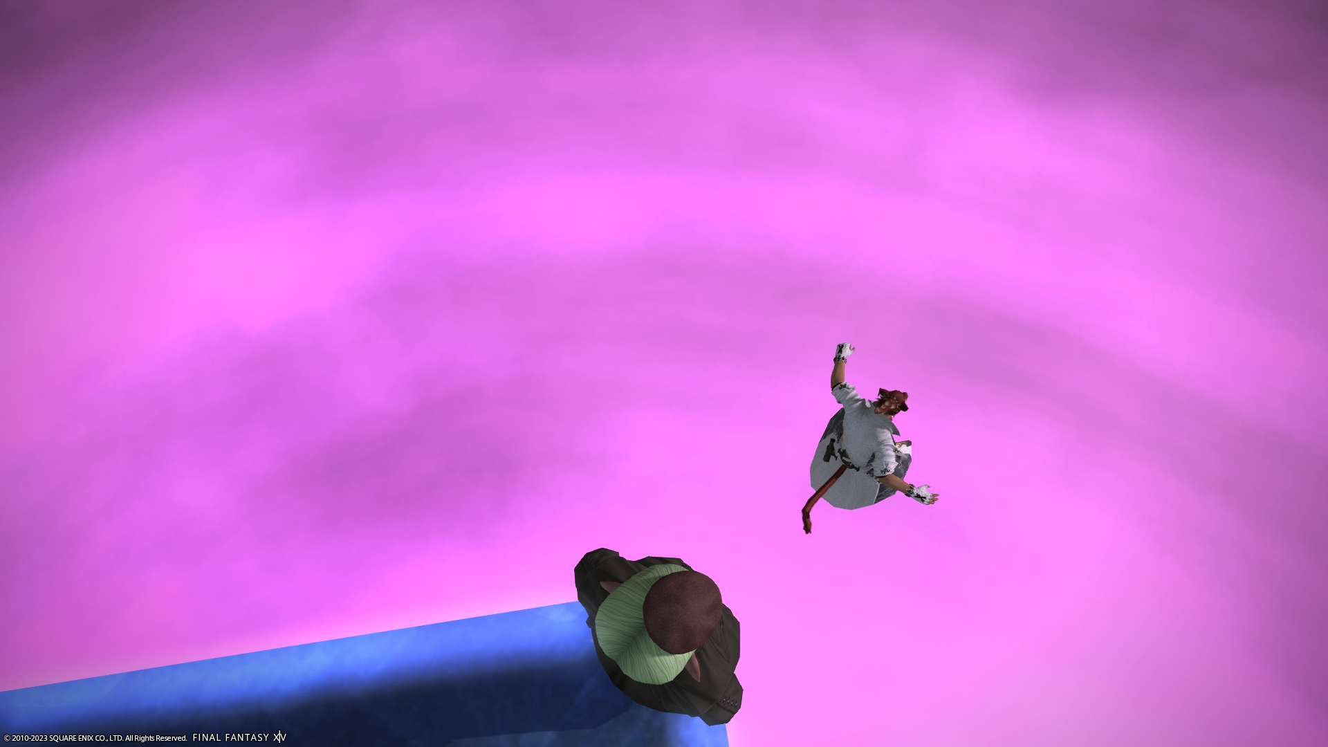 飛び降りるミコッテさん。