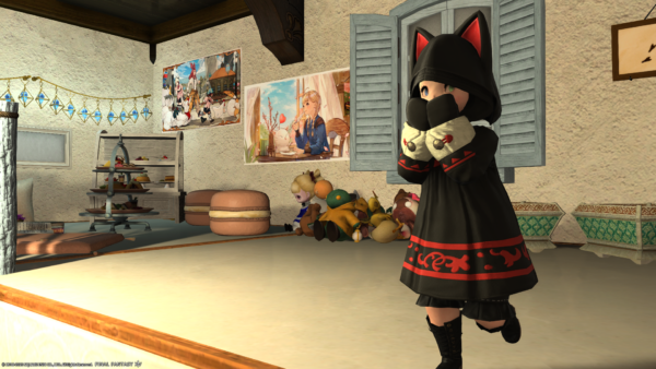 専用装備の帽子、メリヤス編みの網目が見えててかわいいの~!これ絶対ララフェルに似合う装備!