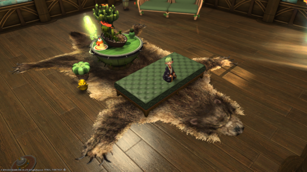 アパルトメントのお部屋になにか敷物を敷きたいなーと。このお部屋は緑がテーマなので緑色のもので何かいいものないかなー?と調度品をプレビューして探していたのですが……