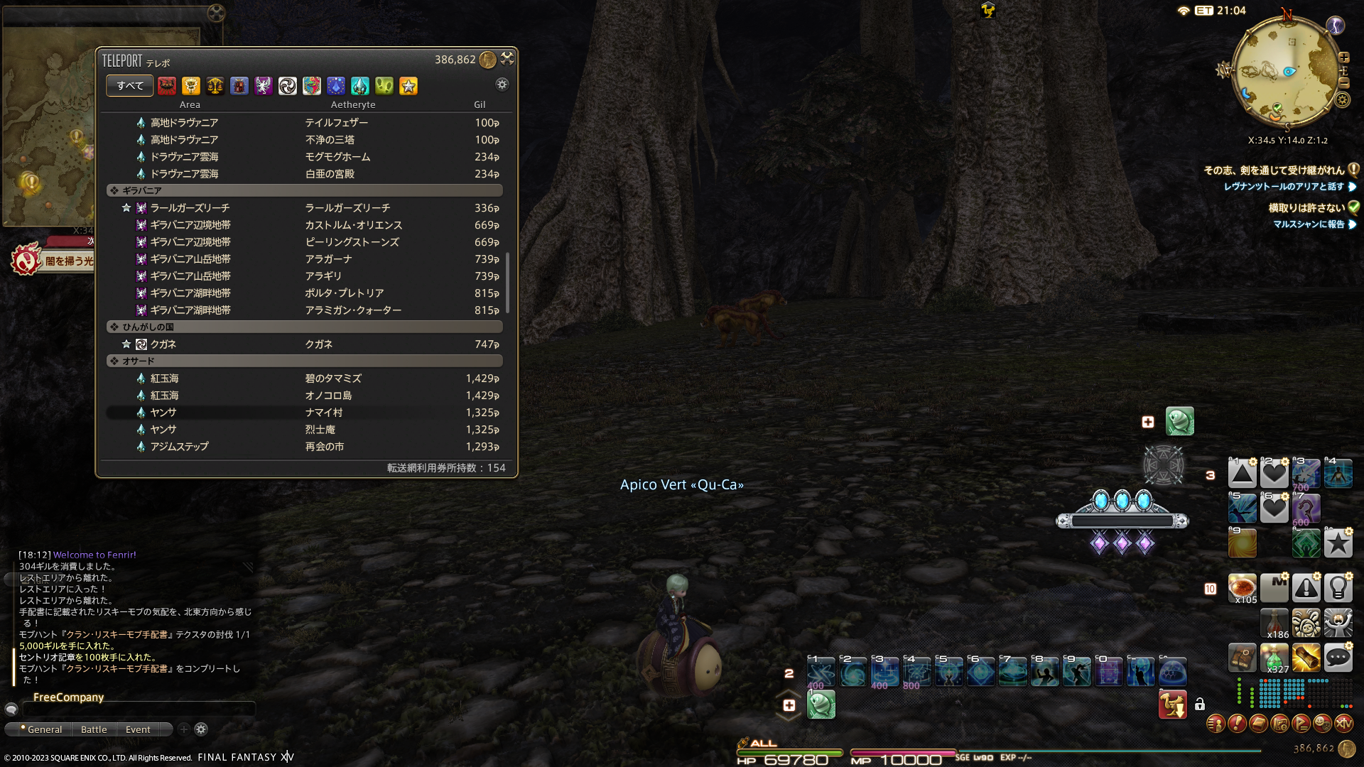 火曜日は、まずイシュガルド下層にいって指名手配のリスキーモブの手配書をもらいます。そしてリスキーモブを倒したらイディルシャイアに行って、新しいクロの空想帳をもらいます。