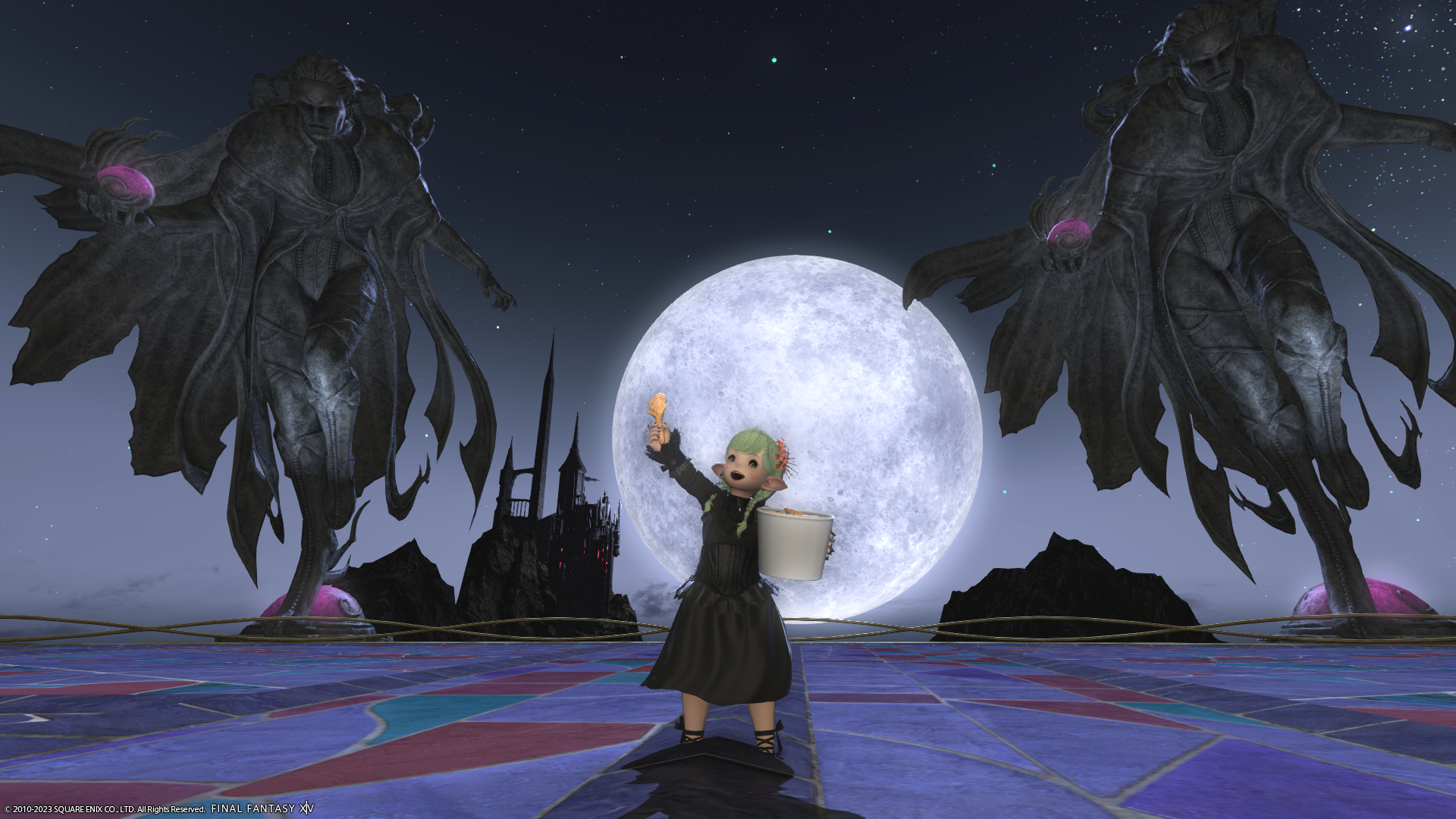 ケンタッキーコラボのエモートをいただいてから、日々フライドチキンをNPCさんなどに食べさせて?回っているのですが、本日はこの方とぱしゃり!