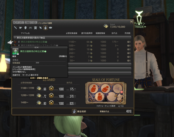 昨日ディアデム諸島で集めた素材を加工して、イシュガルド復興アイテムの納品をしてきました。
