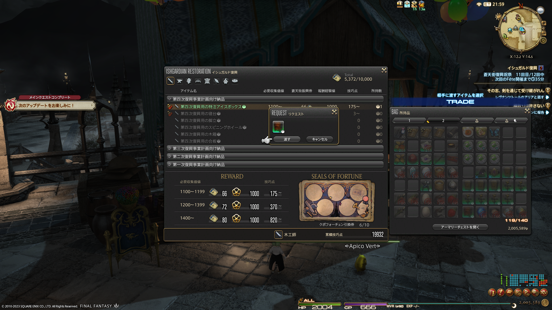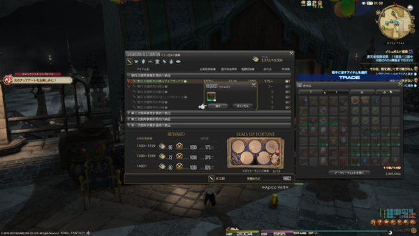園芸と採掘でそれぞれ1周したら(合間で幻素材も取る)、アイテムを査定してもらってそのあとクラフターしております。