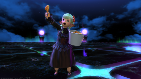 途中から現れたミコッテフィリアさん(よくもう一人のミコッテさんから、もしもしミンフィリアで呼び出されて登場する)と写真撮ってグループポーズから抜けると……