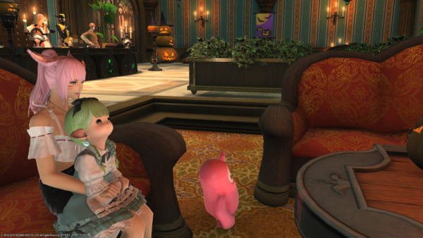 本体にもどって、守護天節のイベントが終わるまでにアパルトメントのイベント限定飾りつけを撮影しておこうと、ロビーでのんびりしていると……