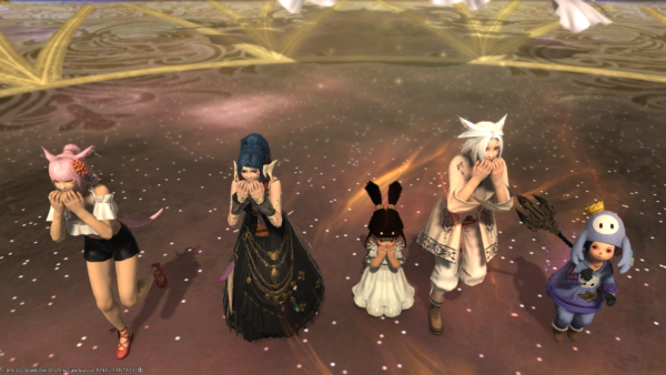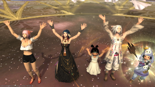 タレイアに申請したのは上の写真でタンクさん除くフリーカンパニーメンバーさんたち4人だったのだけど、マッチングしたらみんなと大変親しくしているフレさんが同じPTのタンクさんだったのでした。