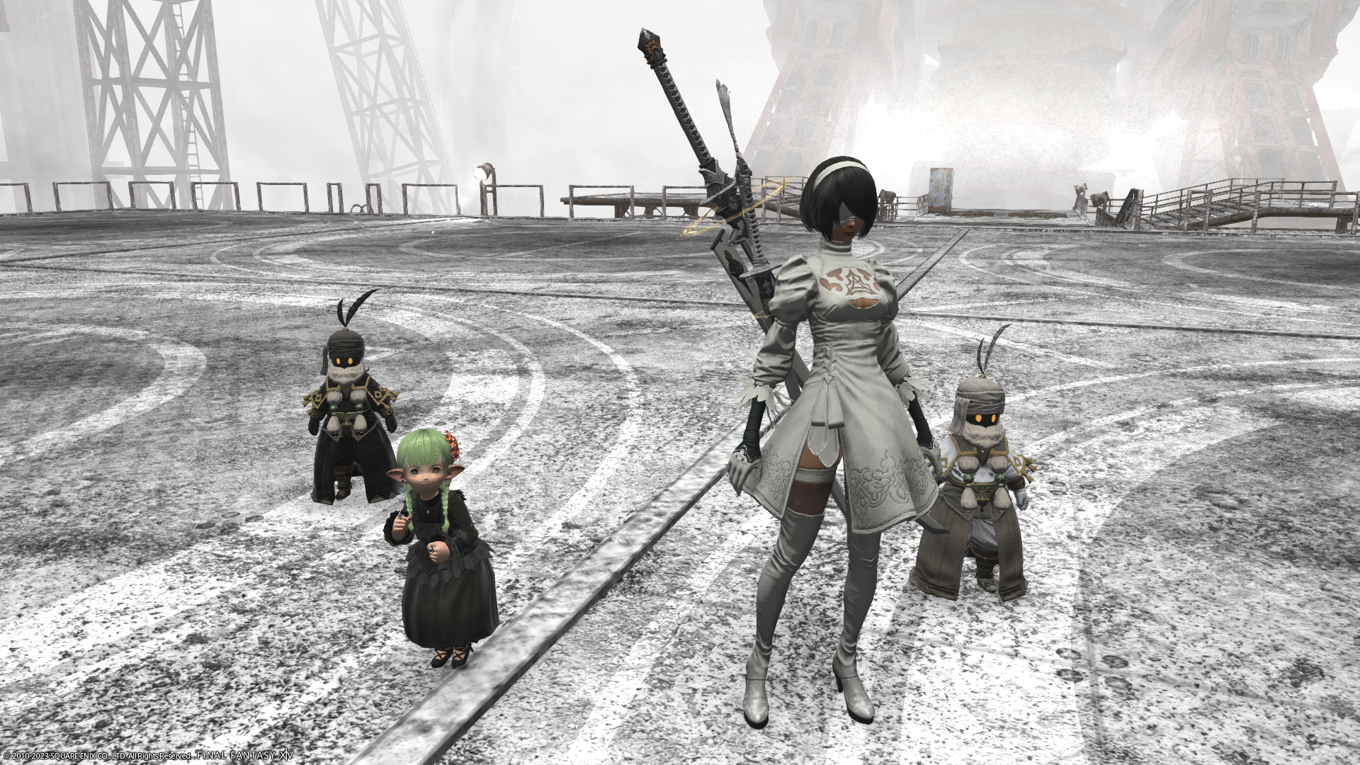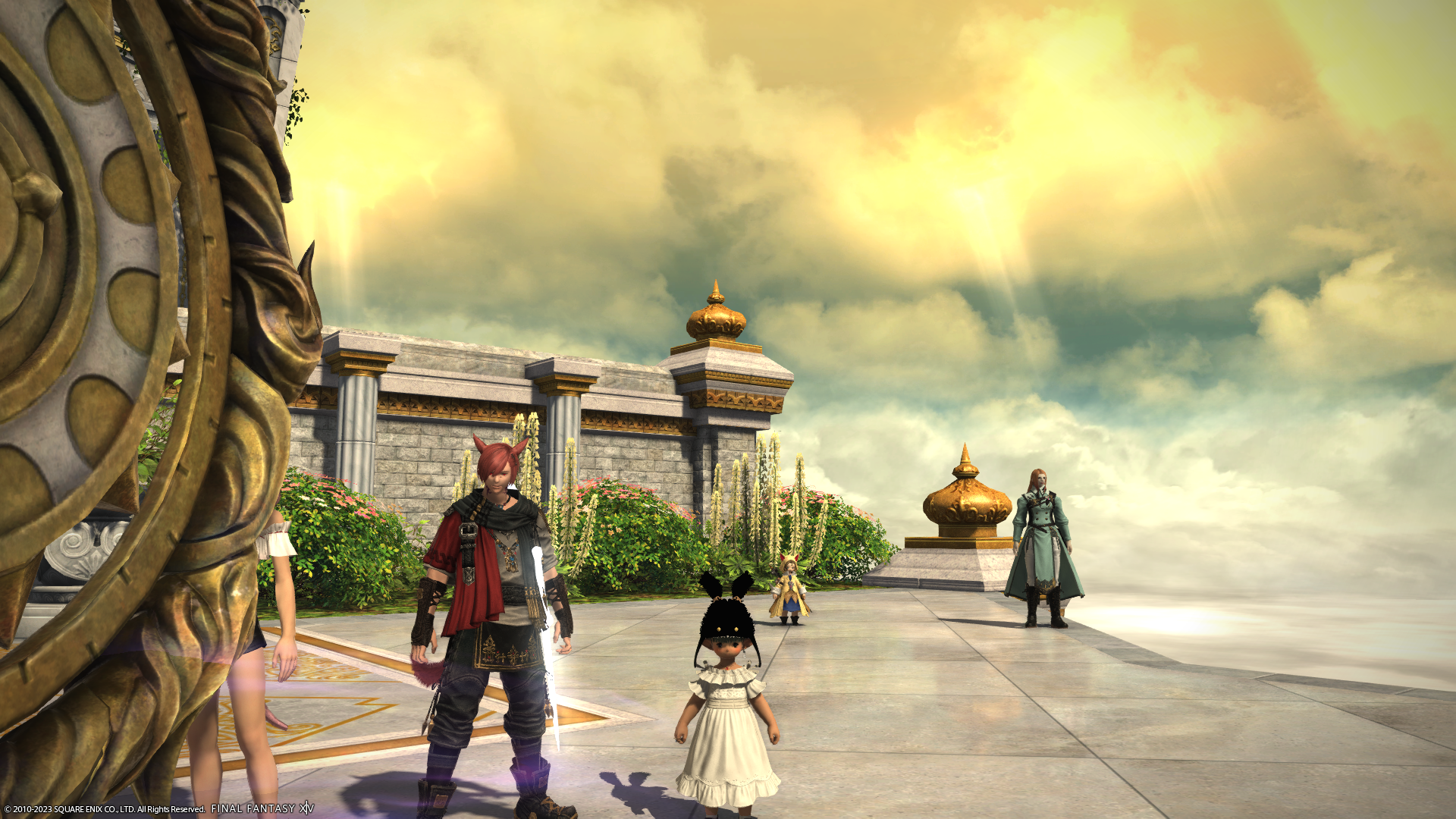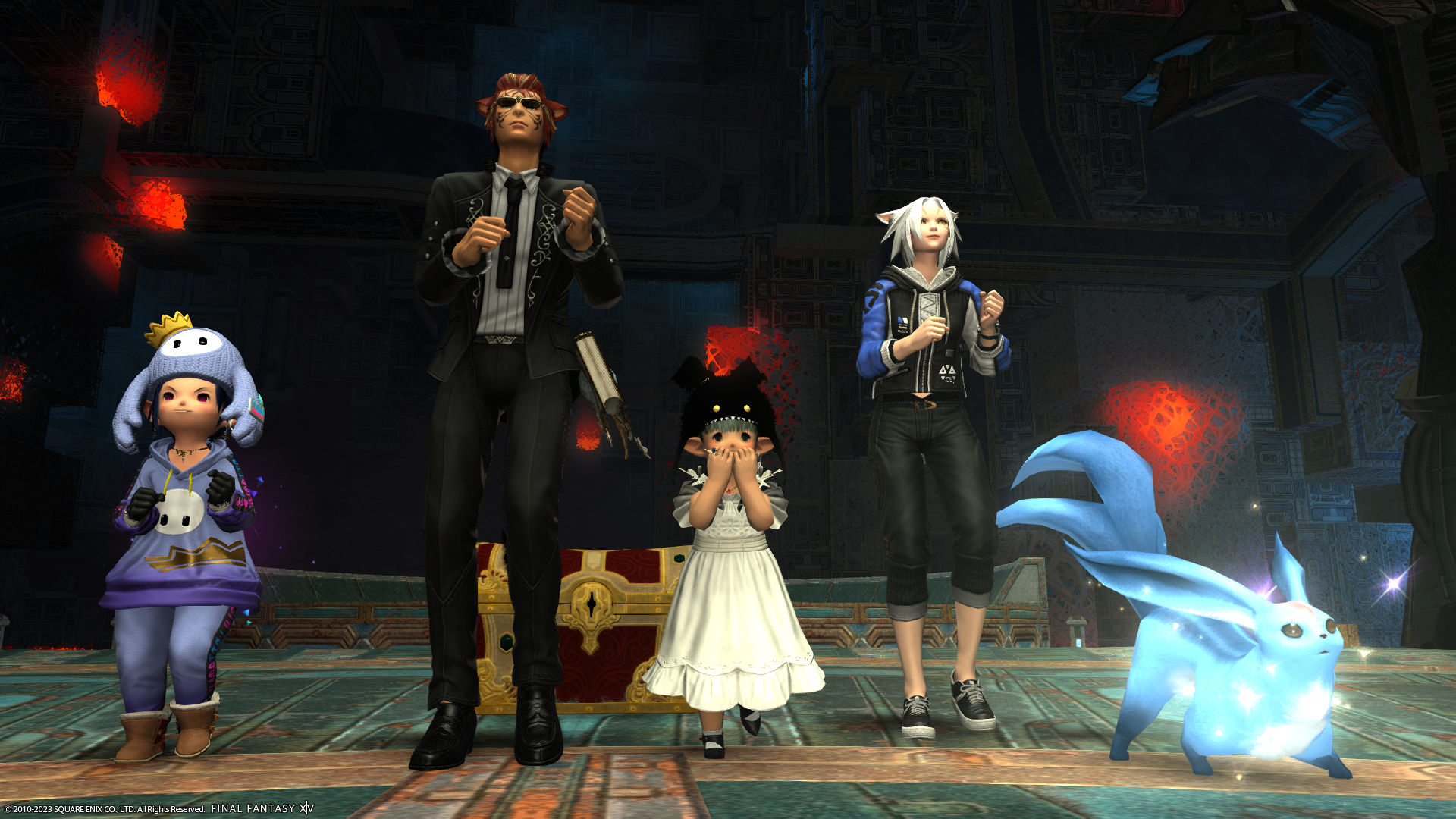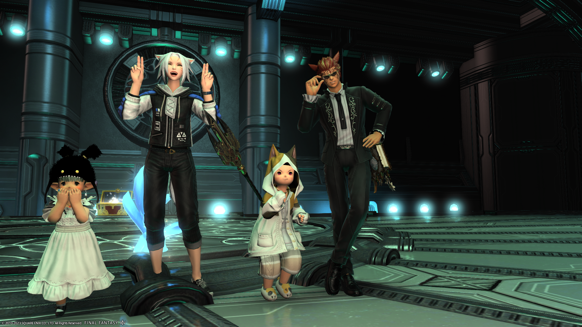 ラハくんとの撮影タイムに、フリーカンパニーメンバーさんも映りにやってきたけど、敵で隠れてしまっているの図。※ラハくんの左に立ってる!