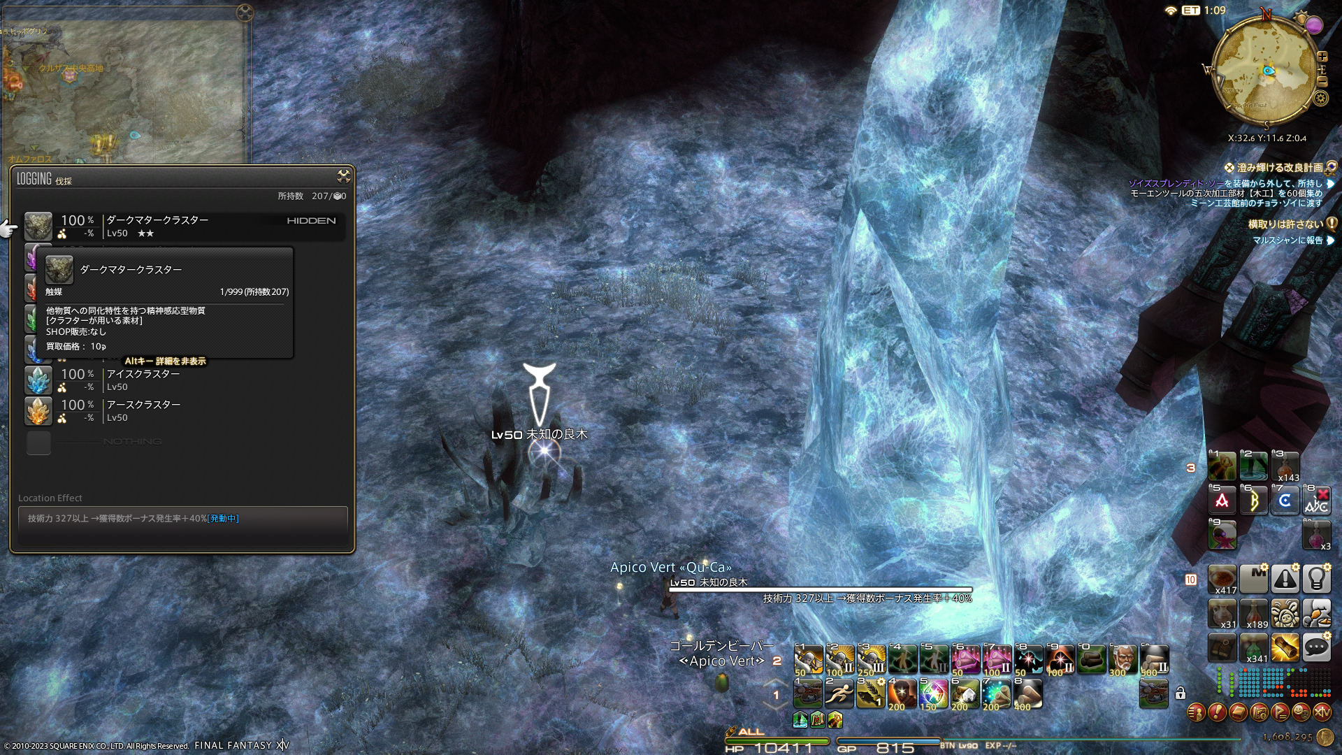 待ちは発生するけど、ここだと定期的に未知の採集or採掘ポイントが発生するのでありがたいです。ぼーっとしながらダークマターを取るにはよいですねー。