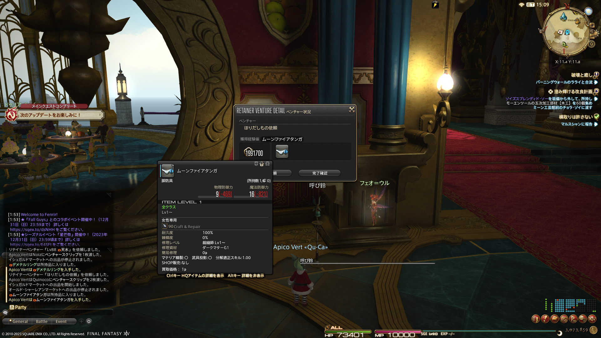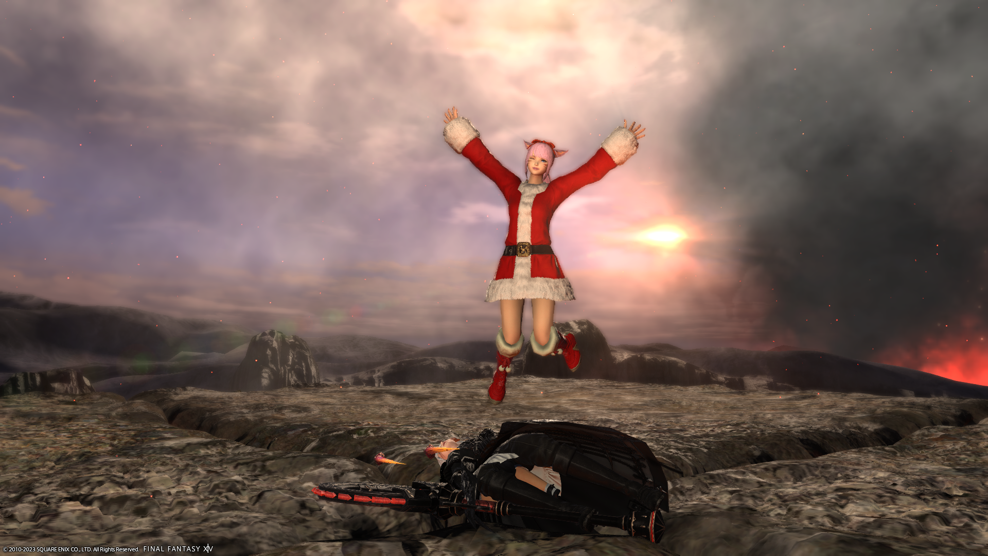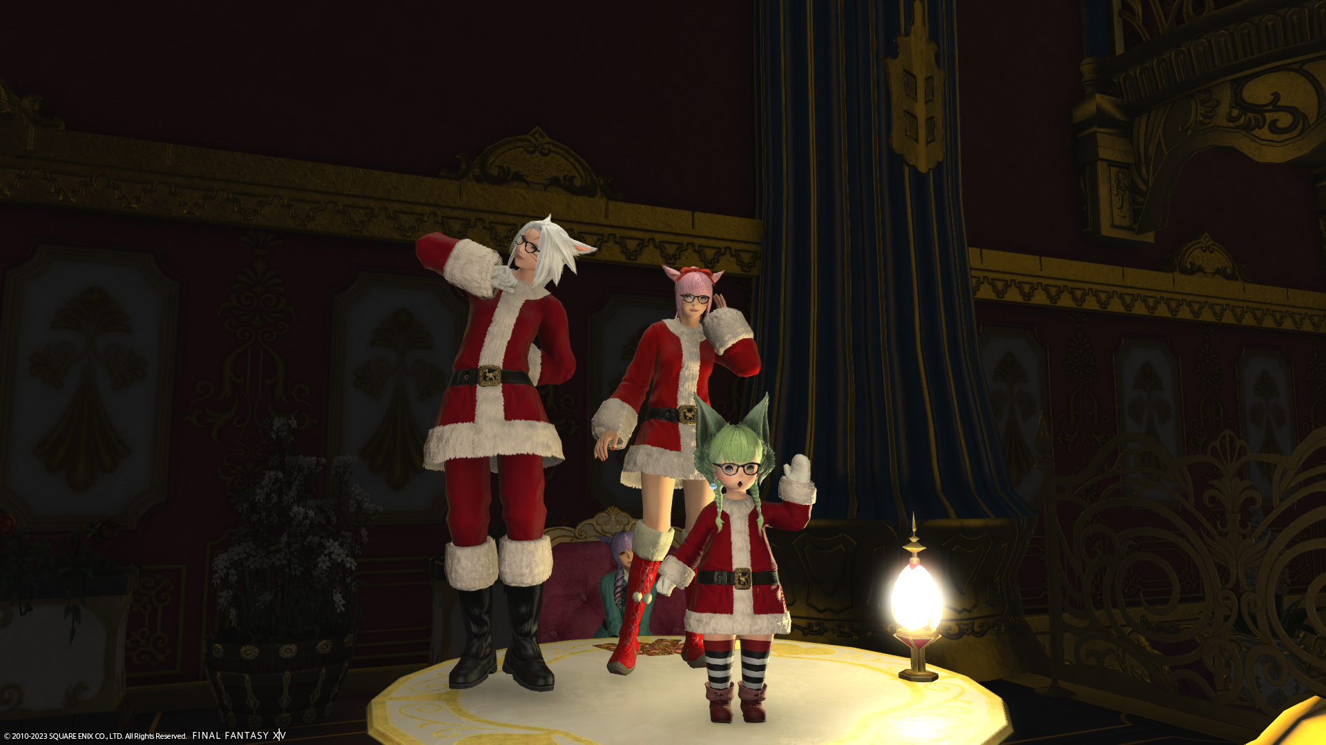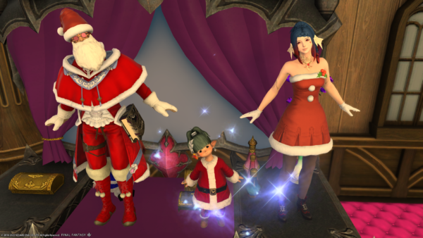 倉庫ちゃんでもサンタ衣装もらったよー、フリーカンパニーメンバーさんもいたのでぱしゃり。
