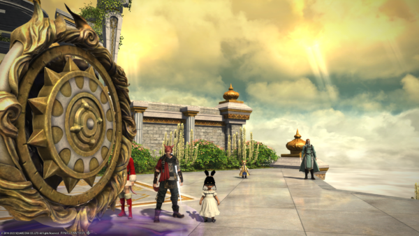 ラハくん撮影タイムで敵の影になってしまうフリーカンパニーメンバー倉庫のミコッテさん。