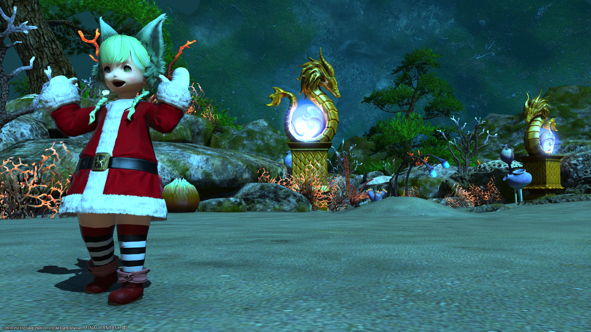 後ろに移っている龍の形の置物、ハウジングの調度品にもあったよねー(霊龍坐像)。