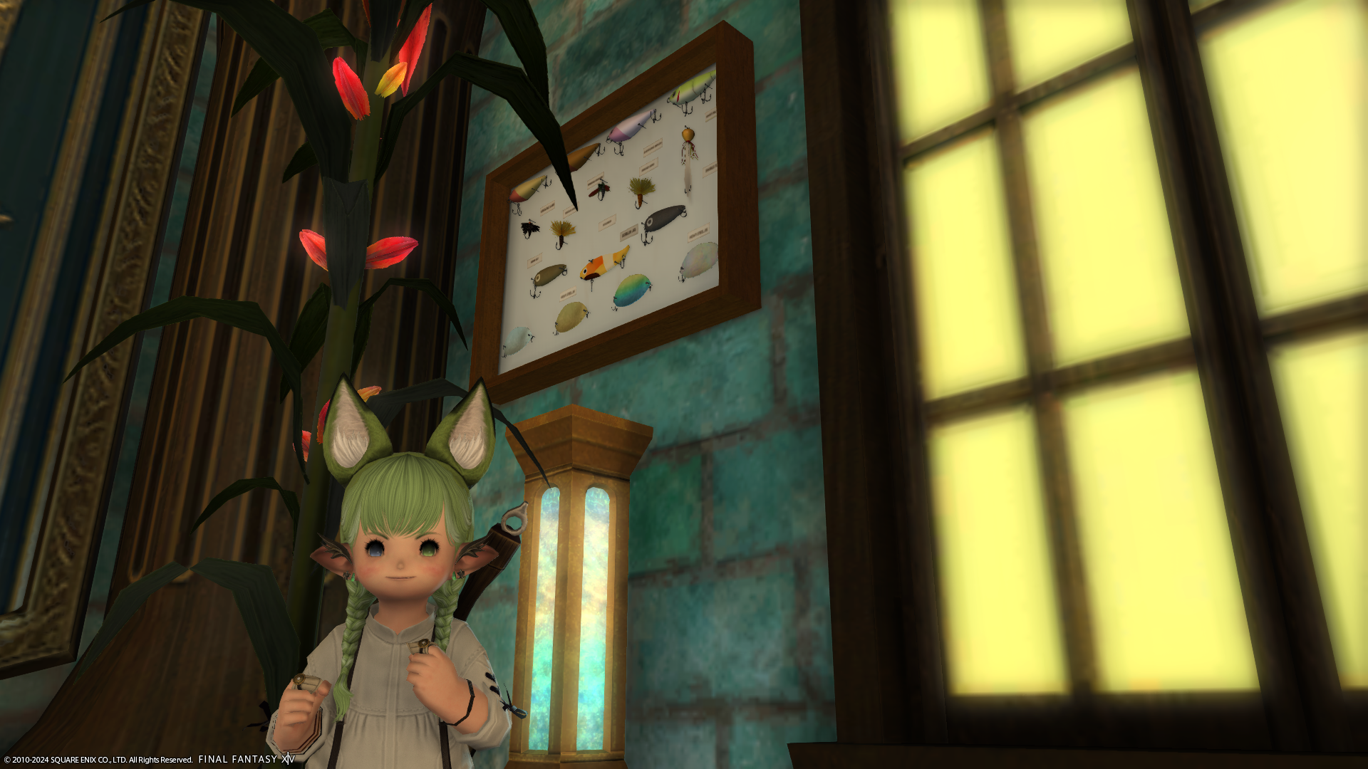 採集作業中に出会った未知のポイントでこつこつ収集品を採集していたらギャザラースクリップが貯まったので、調度品のルアーと交換してみたよー。ちょっと昆虫標本っぽいですよね。