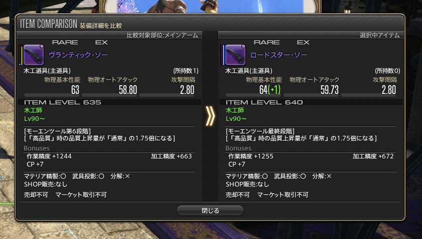 苦労する割にはちょぴっとしか性能が上がらない…ような気がするけど、FF11をこなしてきた身としてはこれくらいは何とでもないという、ど根性世代なのでした。