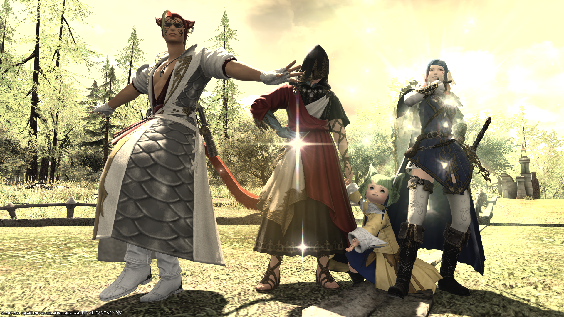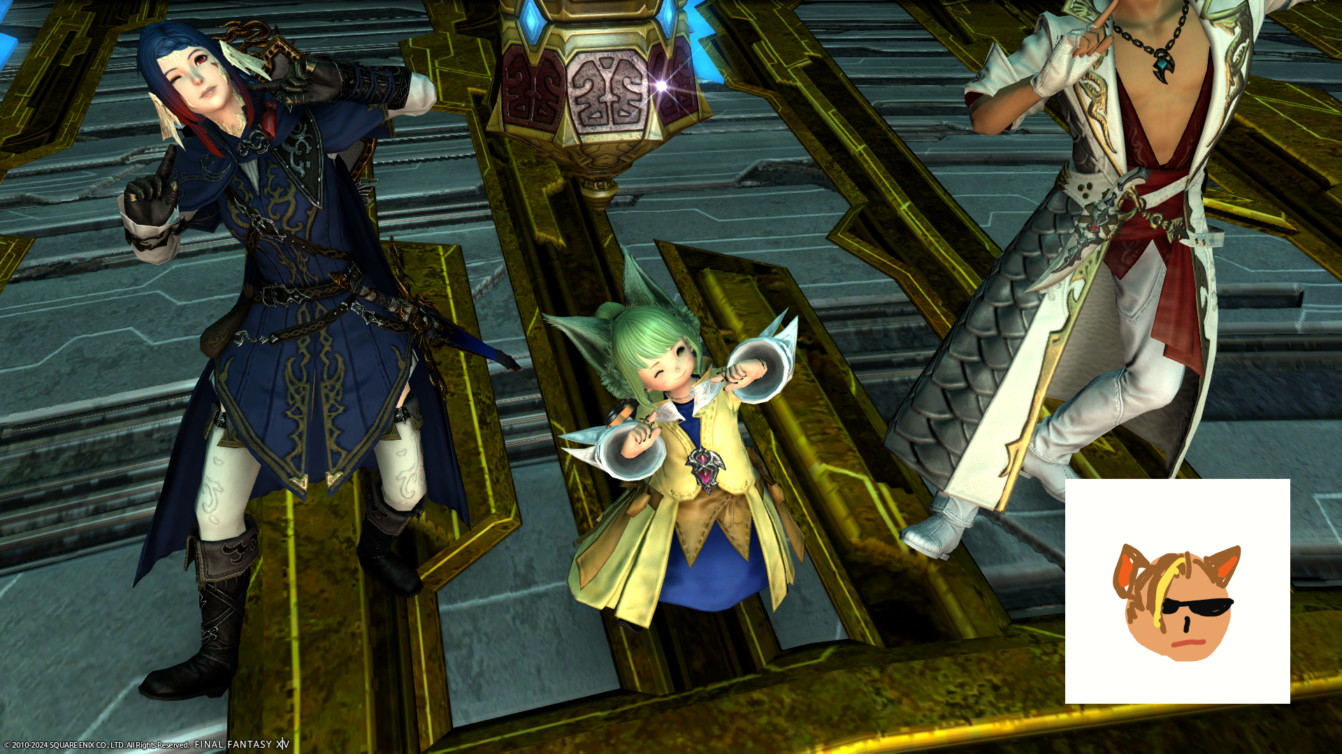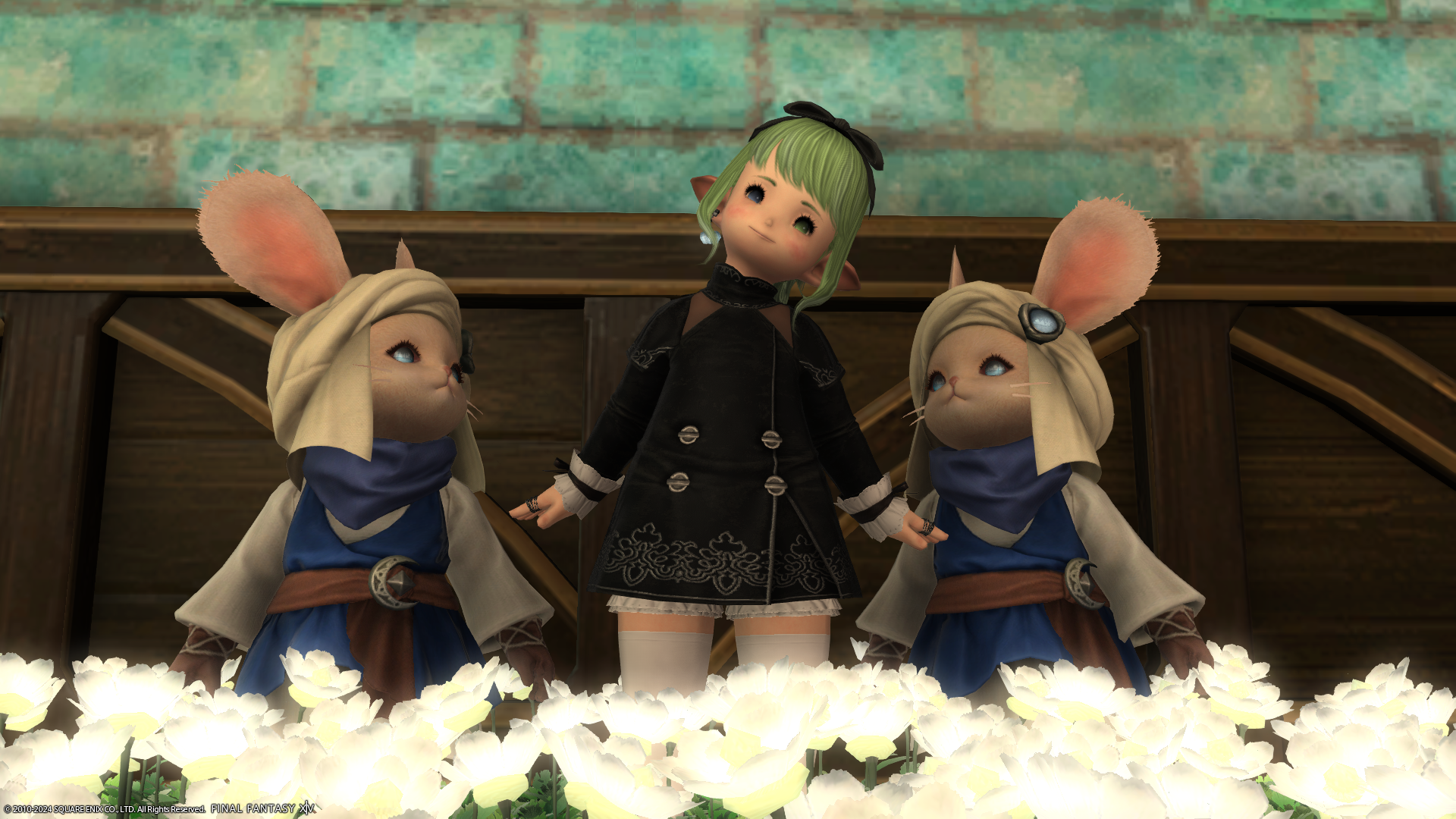 アウラさんをかわいく写そうとしたらミコッテさんの顔が入らなかったので、卒業アルバム撮影を欠席した人みたいにしておきました^^v