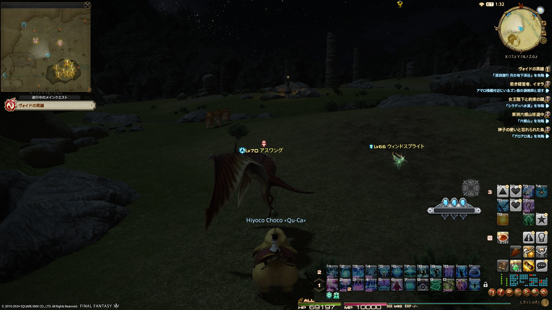 と友好部族クエストの開放をしていたら、暁月エリアの指名手配のリスキーモブを見つけたので討伐。