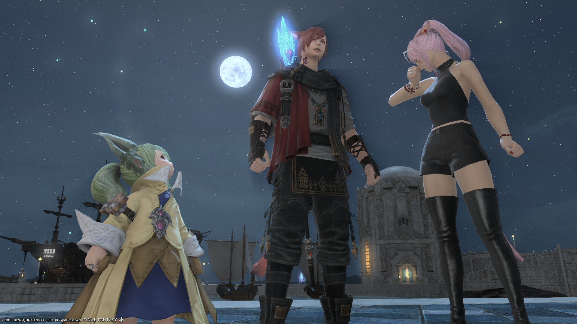 現在のメインクエスト進行状態では、ラハくんがオールド・シャーレアンの港付近にたたずんでいるので、いつでも会えるのです。むふー。