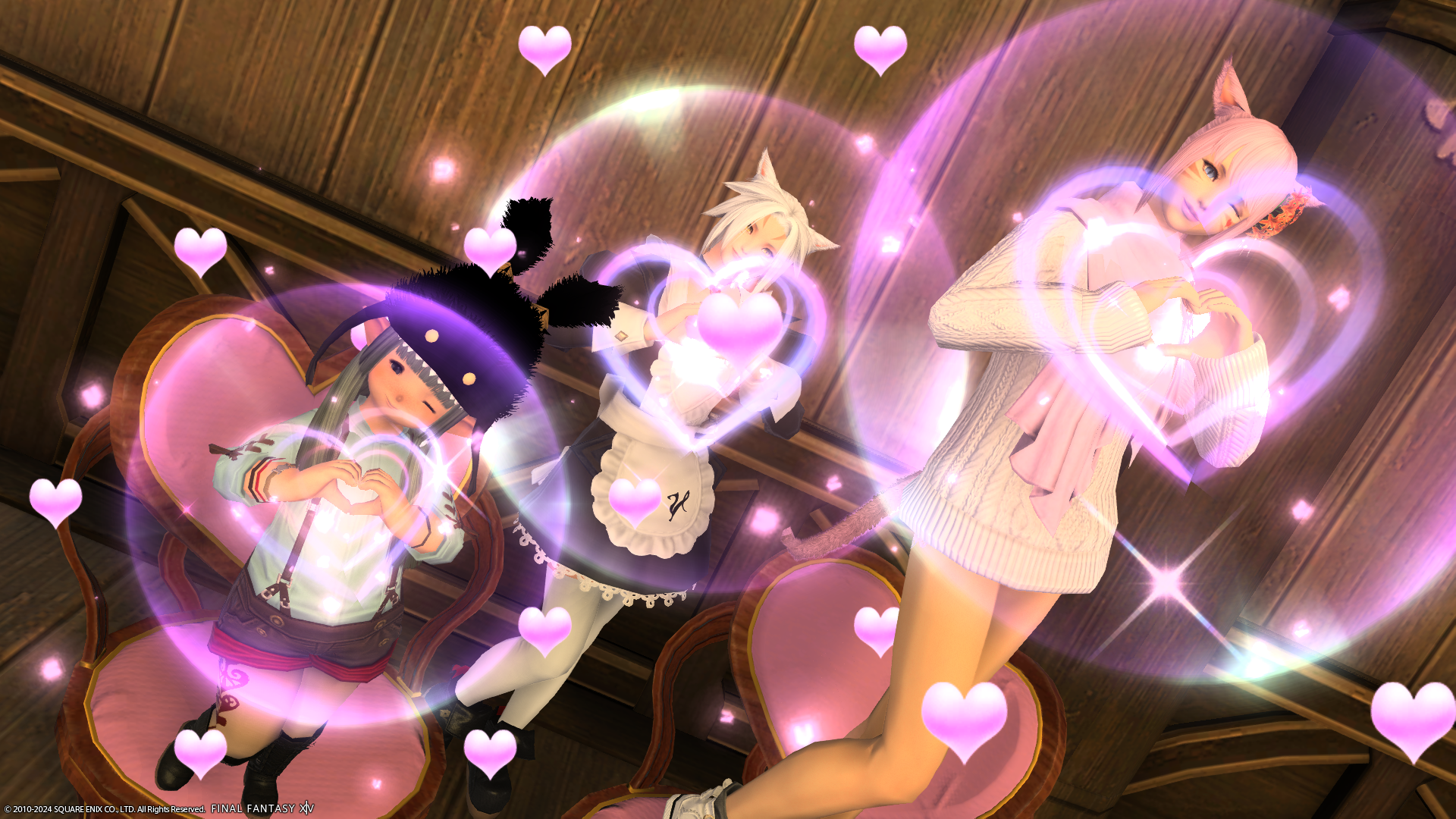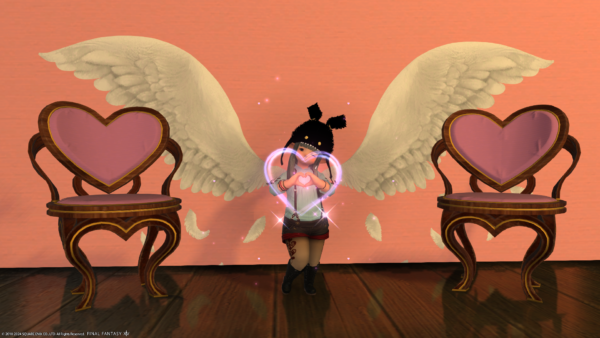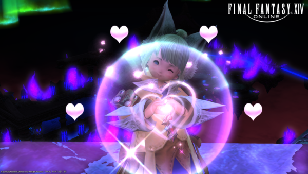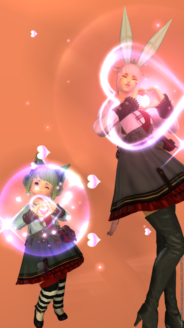 ということで、さっそくイベントの報酬のハートポーズのエモートを覚えておきました。これは使えますね。エフェクトが顔とかぶるので写真撮るのはちょっと難しい…。