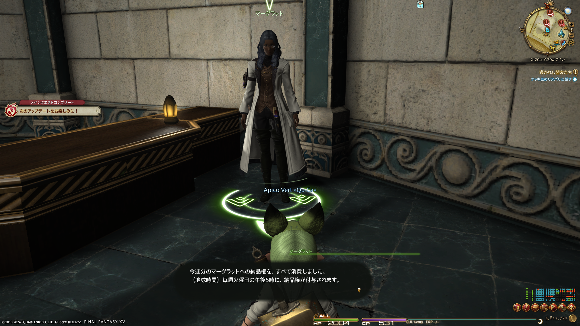 そうして、ラビリンソスからオールド・シャーレアンに戻って都市内エーテライトに向かう途中にいらっしゃるのがこちらのNPCさん。