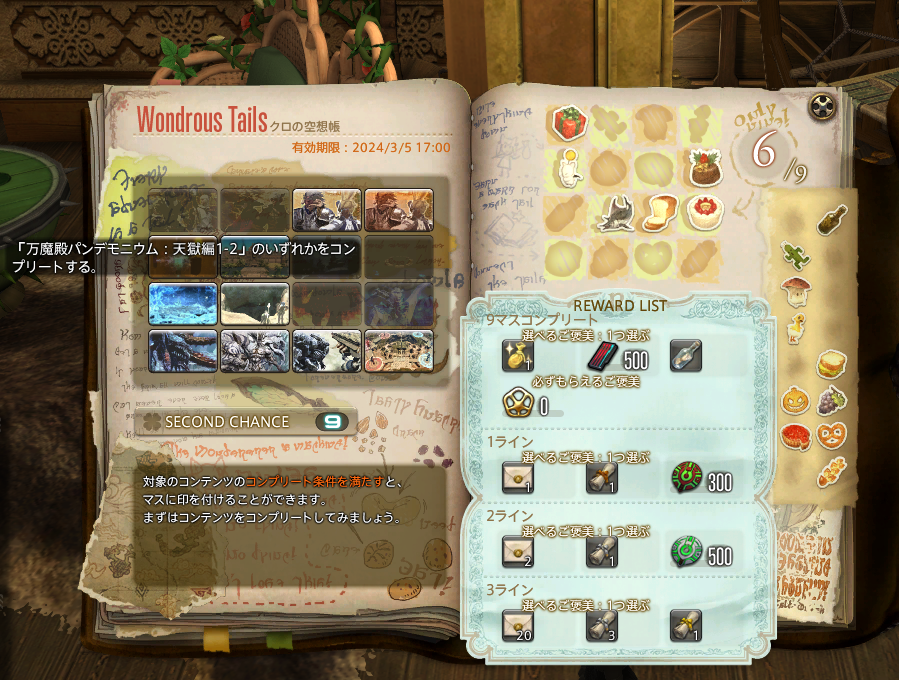 本日は火曜日なので、週制限のあるコンテンツの制限リセット日なのですが…先週のクロの空想帳全然埋めてない!