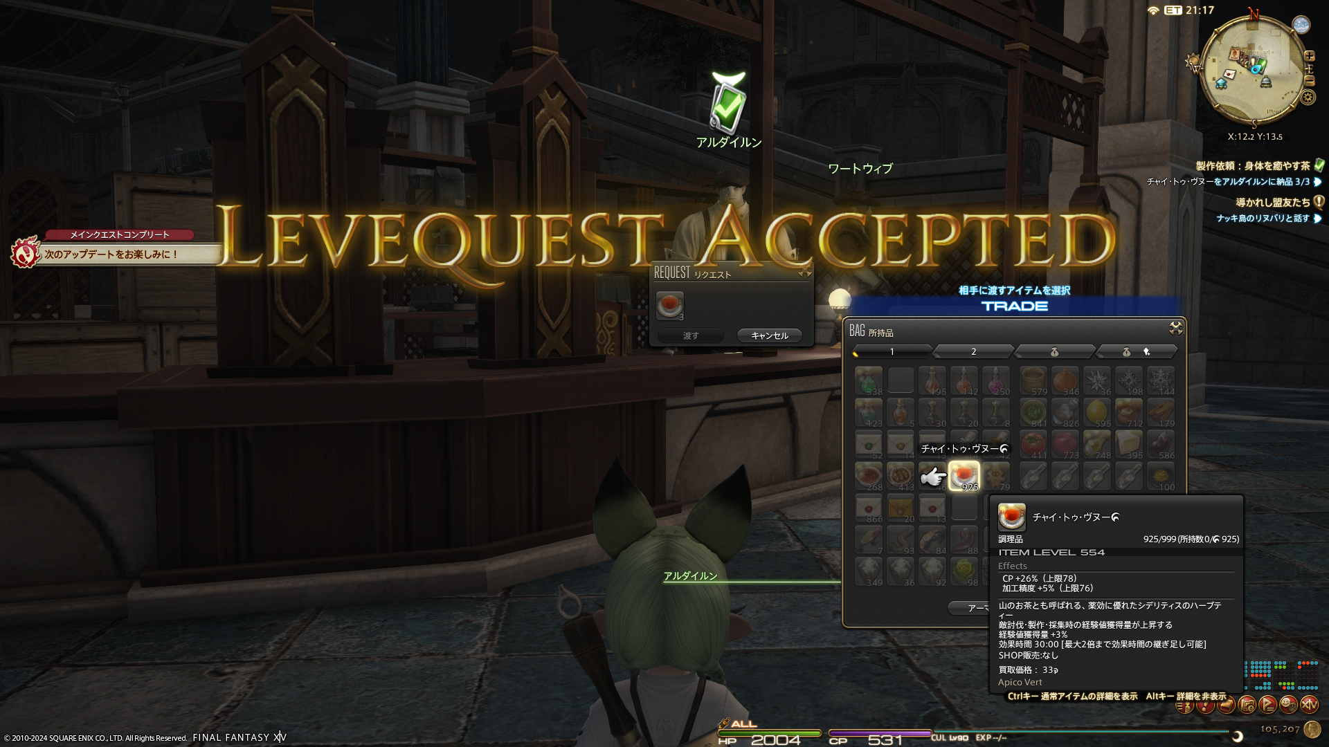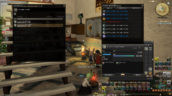 最近せっせとLv90用の食事を作っております。1つ古いパッチの時の食事がたくさん残っているので、先にそちらを消費しようとルーレットのときはそちらを食べているのだけど、最新の食事はお世話になってる方に差し上げたりできるので、作りだめて置こうかなーと。