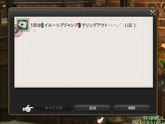 わたくしがINできなかった週末の出来事をこうやって報告してくださる大変律儀な王子。そしてメッセージには2通目もあって…