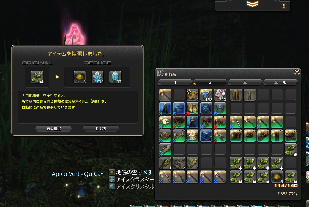 砂入りごはん 投稿日時: 2024年3月20日 投稿者: zuizui 返信 まずは、指名手配のリスキーモブ討伐。 アプカルのブラッディ・マリーさん…でっかいです。 この後は地鳴の霊砂を求めて、釣り。 1度霊砂取りに来たら100個取得するのを目標にしています。 ちょっと面倒だけど、園芸や採掘で刻限を狙うよりは楽に採れるのでありがたいです。食事の材料に使うのだけど、砂入りの食事ってどうなの~って毎度思います。 本日のアライアンスレイドルーレットは… オーボンヌでした。 やっぱり最後が苦手だなぁ…わちゃわちゃなります。