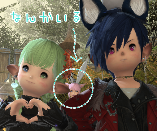 って、まあそうなるように撮影したんですけどネ。このミコッテさん写真撮影しているとすぐに映りによっいらっしゃるので、入れてあげないとすねちゃうかなって思って入れてあげました!!!