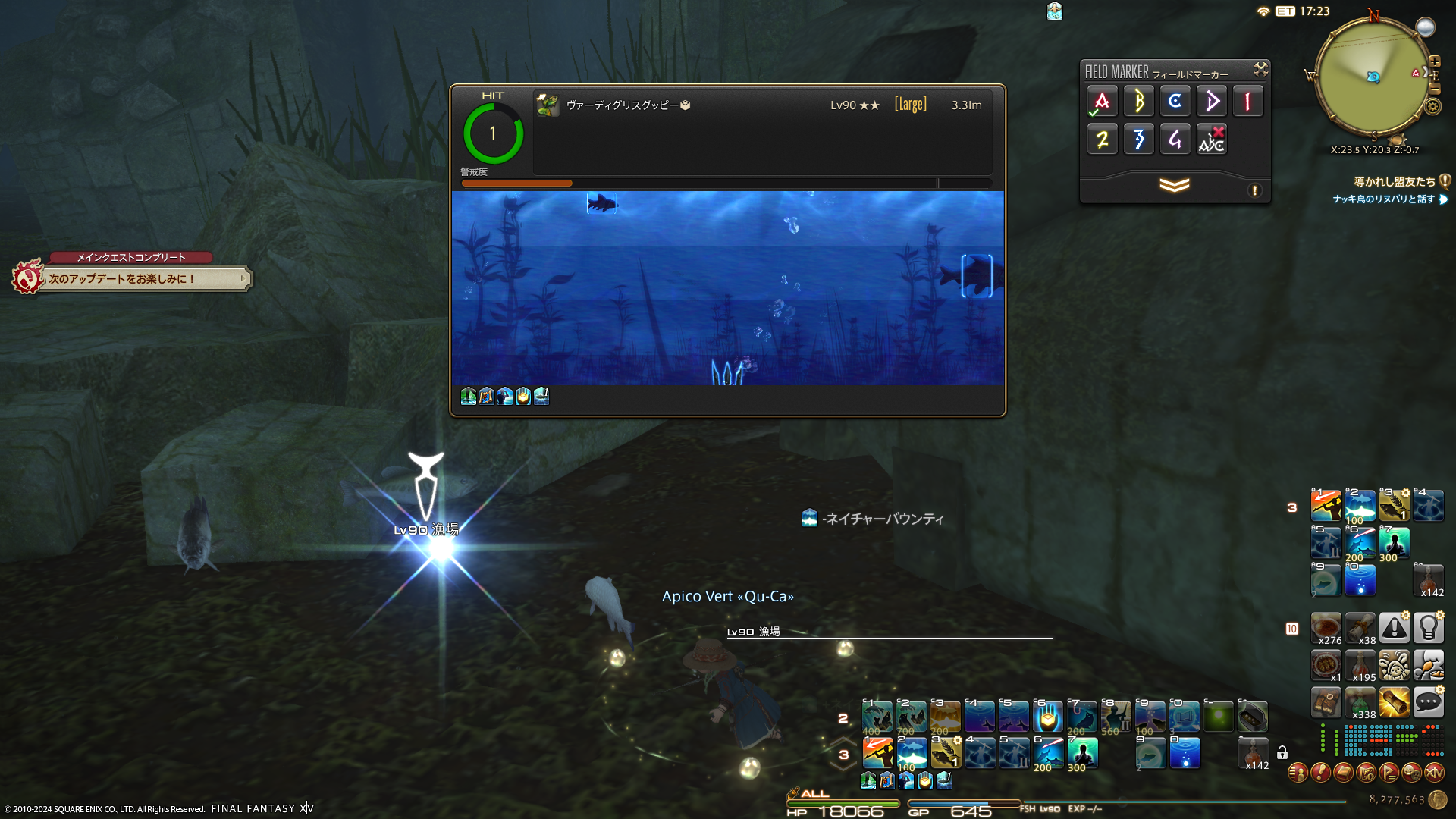 ここはブロンズレイク北東湖底なのですが、近くに他の漁場もあるみたいなので地鳴りの霊砂狙いの方はお気をつけて…。フリーカンパニーメンバーさんがずっと違うところで漁してた;;