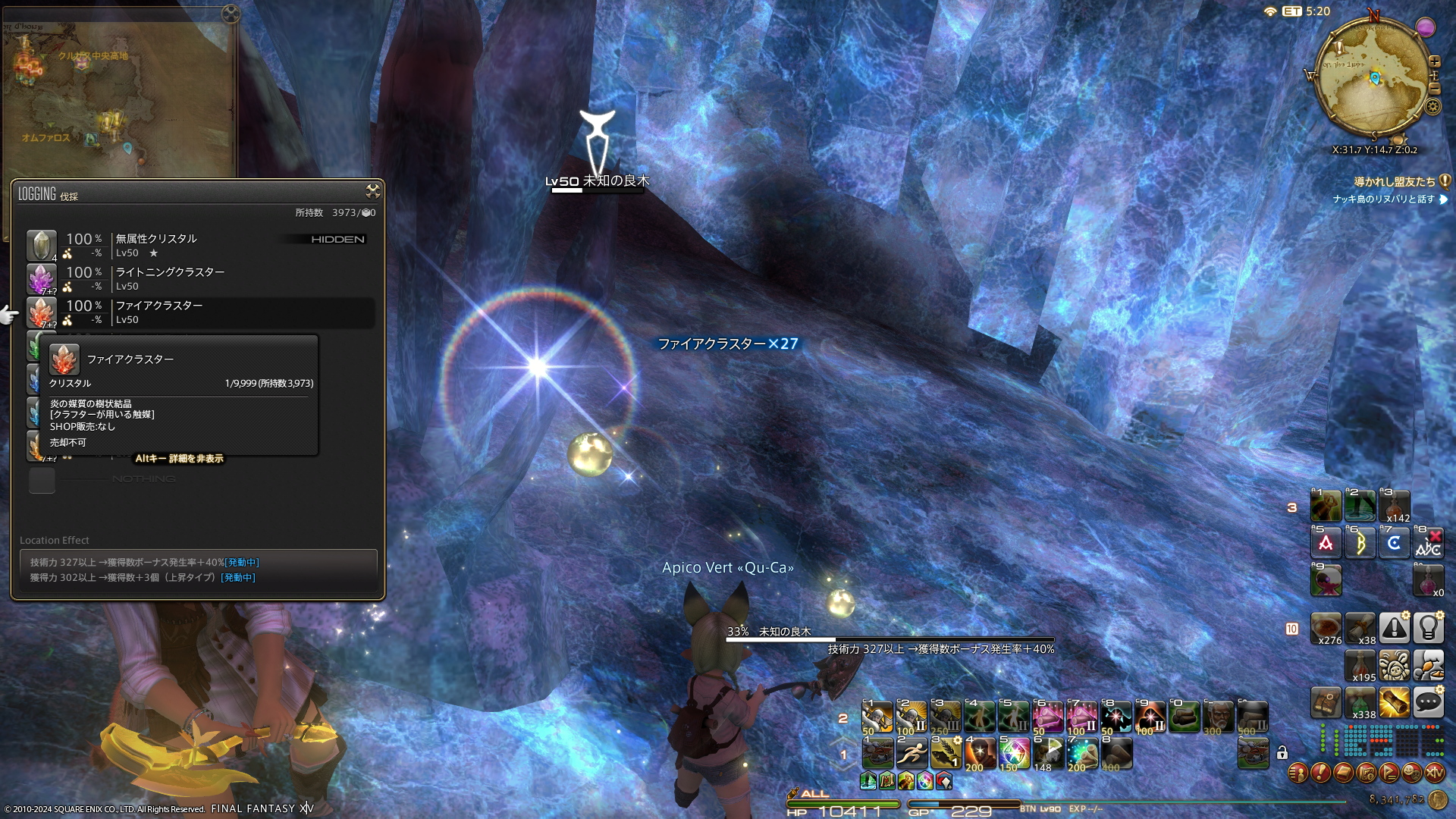 ちょうど他のゲームをしながらとるのにちょうどいいので、モードゥナにこもってちまちま補充しておきました。午前は園芸、午後は採掘で未知のポイントから採取できます。