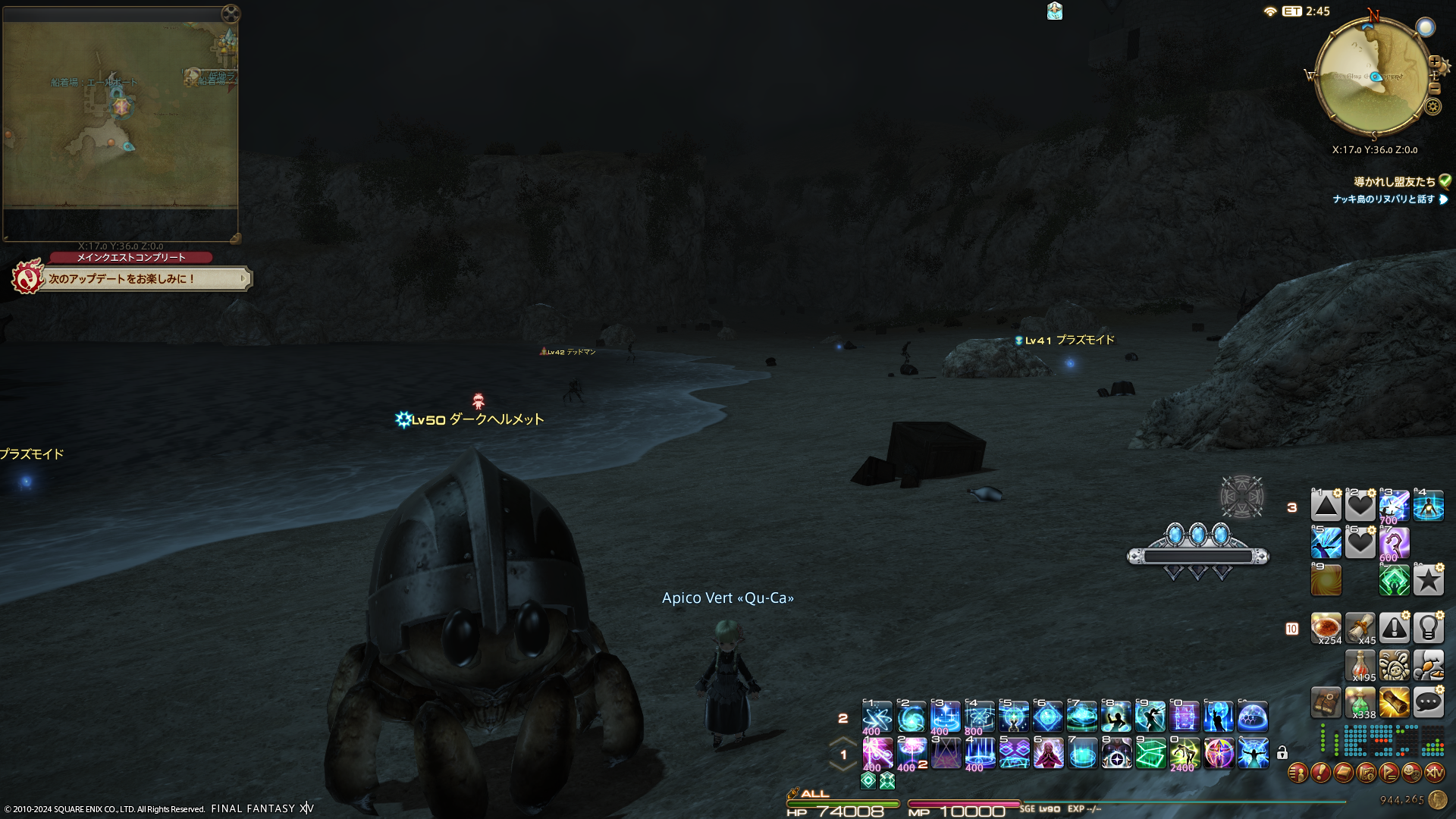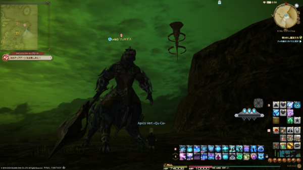 先週受けた指名手配のリスキーモブを倒していなかったので、リスキーモブがいるはずの西ラノシアに行ったのだけどあちこち探しても見つからない!おかしいな?全部探したはずなのになーと、2周目のエリア捜索をした後で気が付いた。