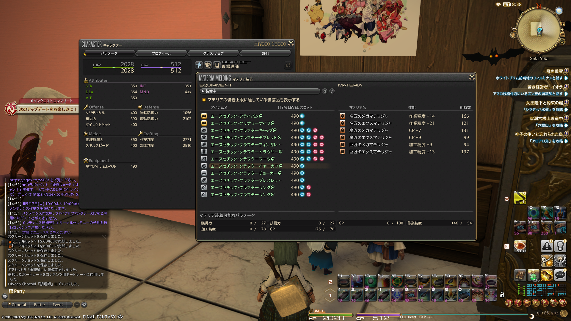 個人的には今度の拡張ディスクでは、スタートラインに立てた状態で始められるのが楽しみだったりします。暁月が発売された時は、新生終わったところだったので(正確には新生終わってしまってて次のメインクエスト進行は拡張ディスク発売待ちのお預け状態)、スタートラインに立てていなかったのですよね~。黄金では、クラフターとギャザラーのマテリアをもりもり製造したいなぁと思います。