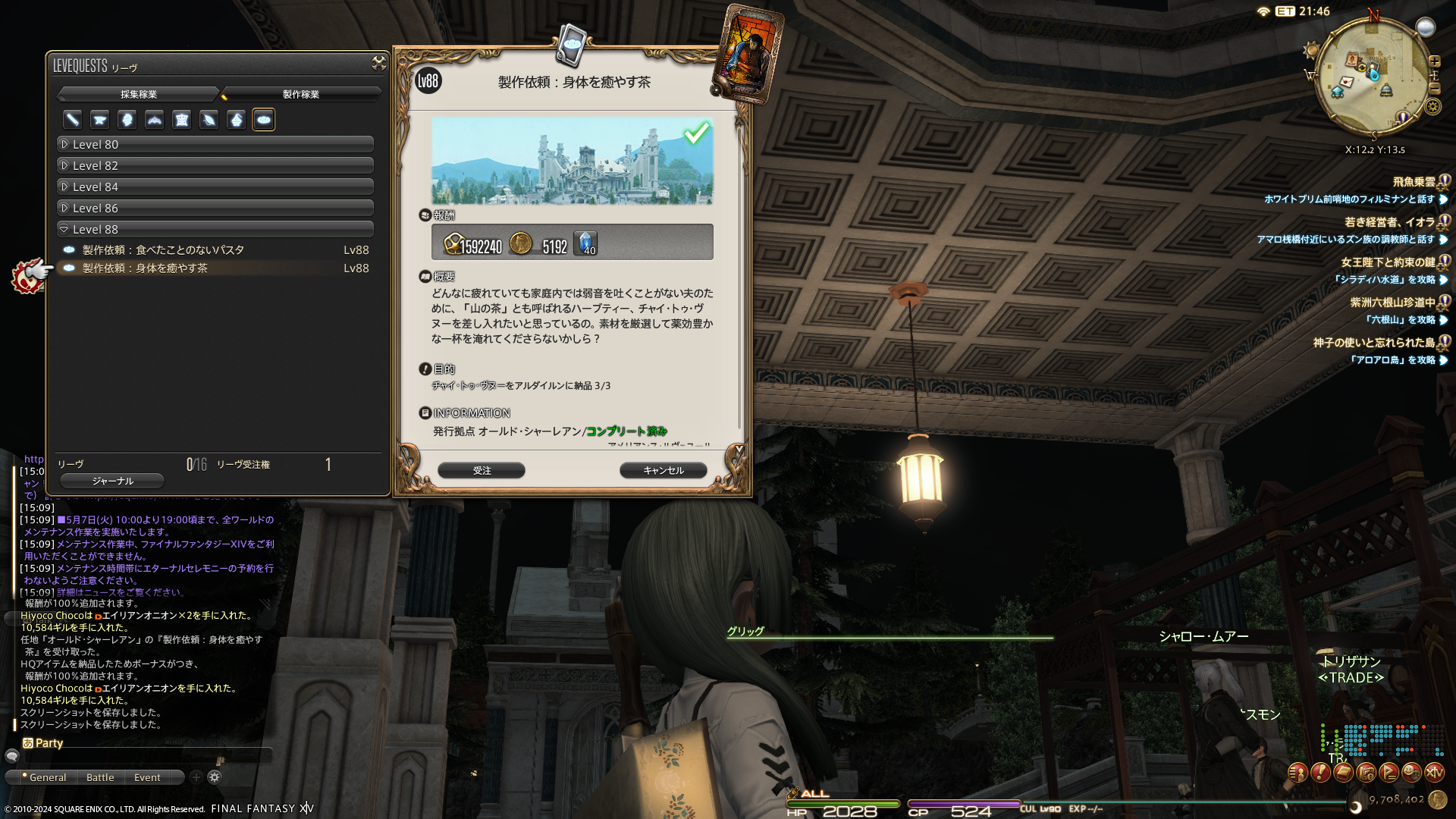 王宮前の大きな階段のところにいるNPCに話しかけると通してもらえました。王宮に入るときやガレマルドとかに移動したいときに話しかけるNPCなどがいるあたり。空中庭園の案内人みたいな名前のお方。NPCの写真撮るの忘れちゃった…。