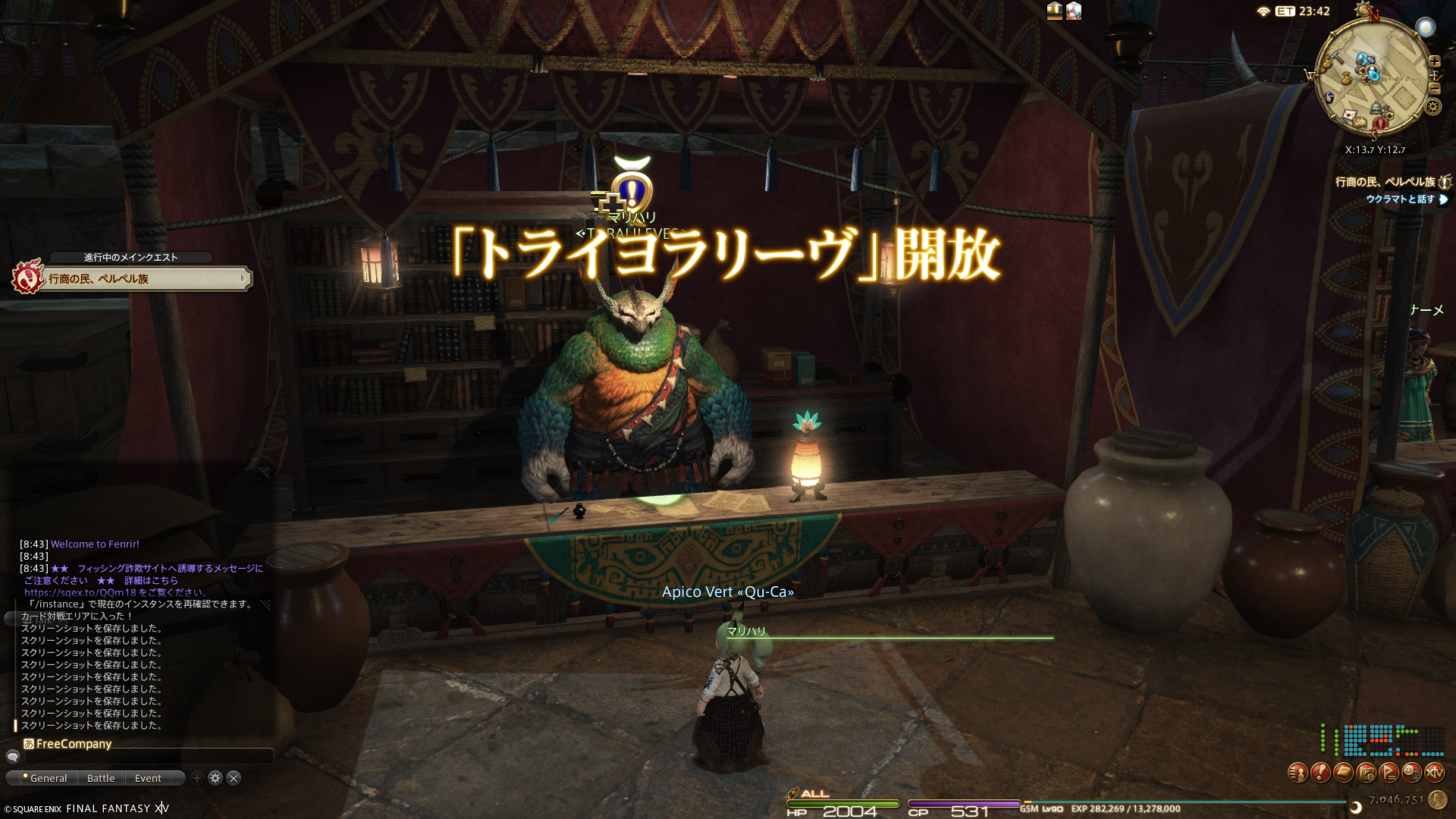 ちなみに今日はメインクエストのダンジョンの写真とかも載せたりしますので、見たくない方はご注意を。これ書いてる時点で、フリーカンパニーメンバーさんたちはメインクエ終わってるところなので、普通ににっきに書いちゃいます。
