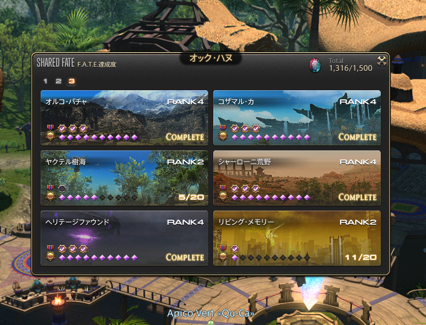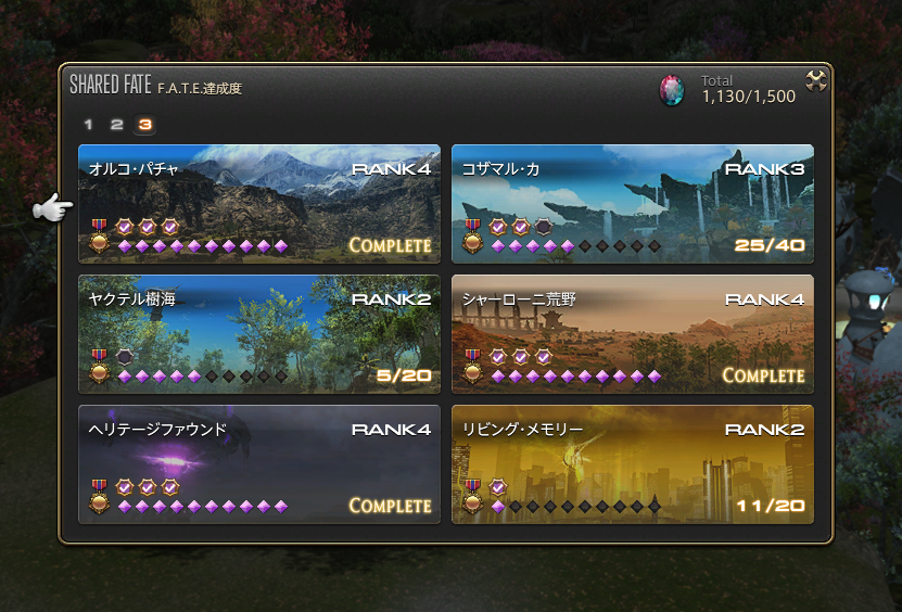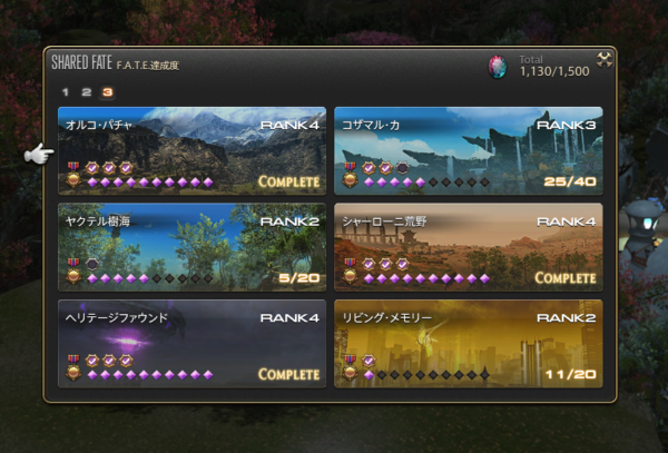 これで黄金エリア4つのF.A.T.E.ランクが最大になったので、あとはヤクテル樹海とリビング・メモリーを残すのみです。