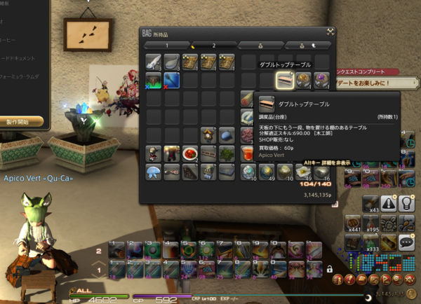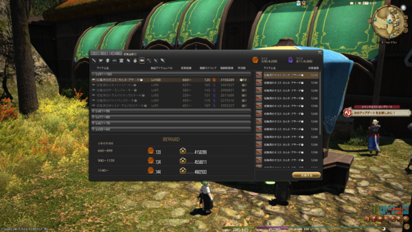 Lv90時代のマテリアでもつけておけば何とかなるでしょ!くらいに思ってのんきに構えていたものの、それなりに新しいスクリップの「燈貨」をもらえる収集品の素材は準備してあったので助かりました。