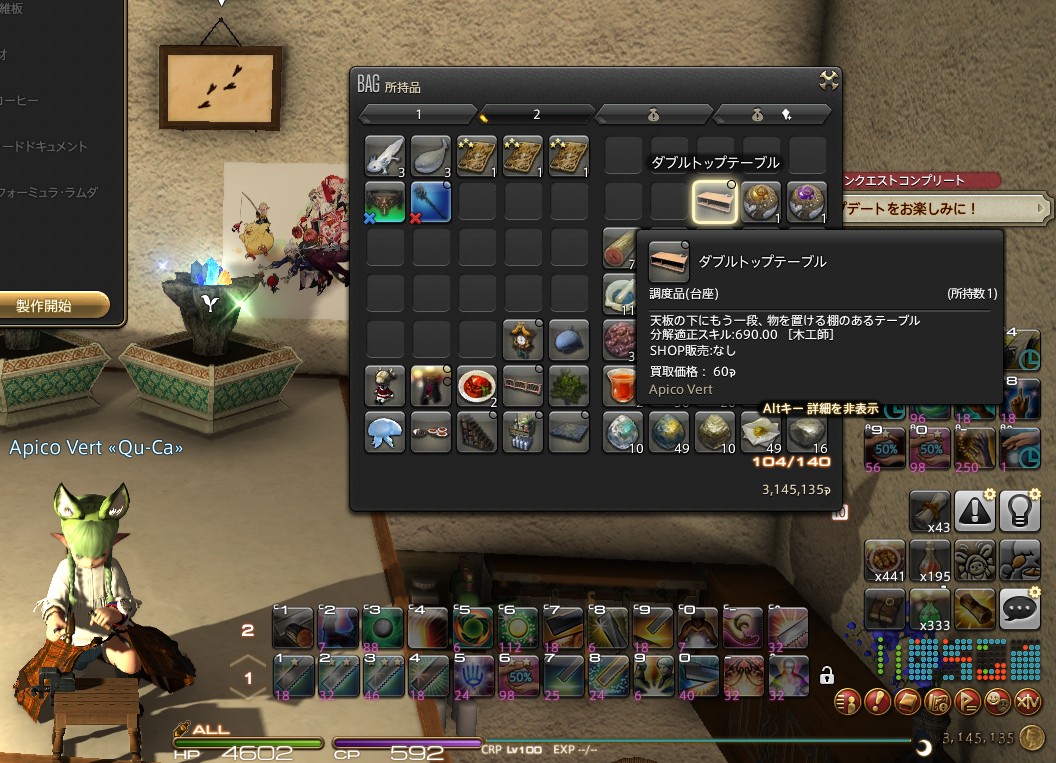 昨日は、魔法大学取引でスクリップを稼ぎ、新しいクラフターの秘伝書を全種もらったのですが、いざ伝説素材の加工をしようと思ったら、マテリア穴にLv90時代のマテリアを嵌めただけでは、心もとなさすぎる…。