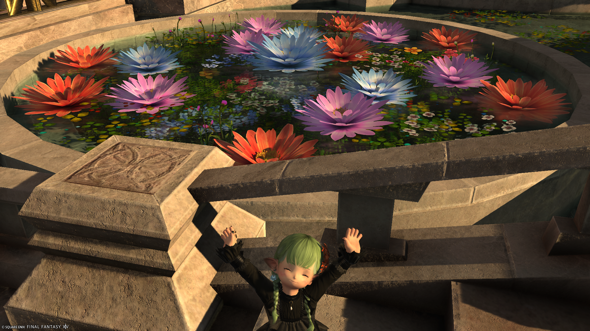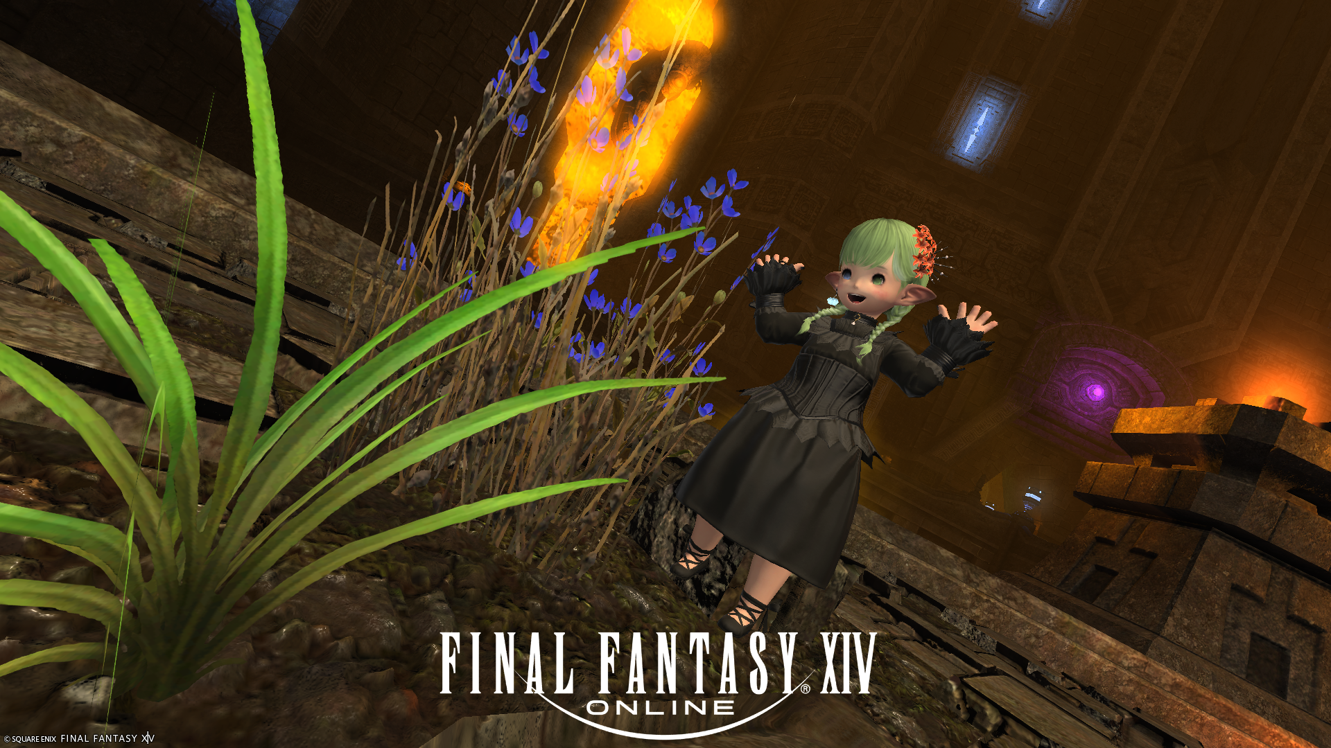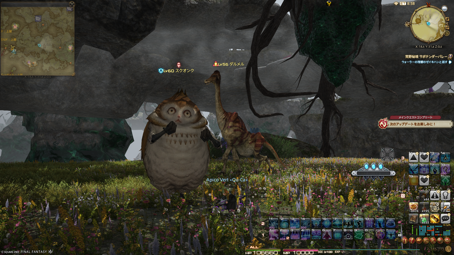 このあとは日課のアライアンスレイドルーレットへ。本日も昨日と同じく、毎度おなじみ古代民の迷宮だったのですが、どこかで記念撮影しようと終わってからデジョンでスタート位置に戻っててけてけ走っていたら…